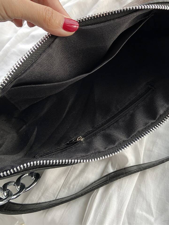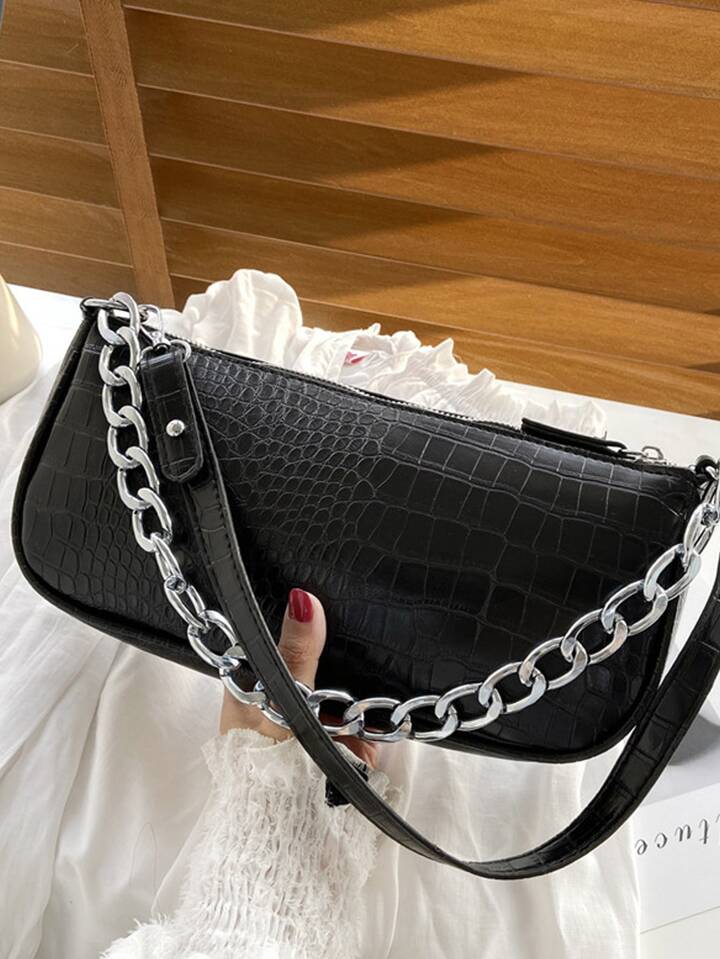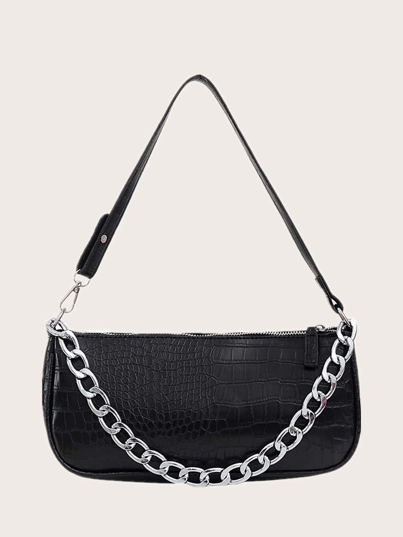 Krokodil Geprägte Baguette Tasche Mit Kette
