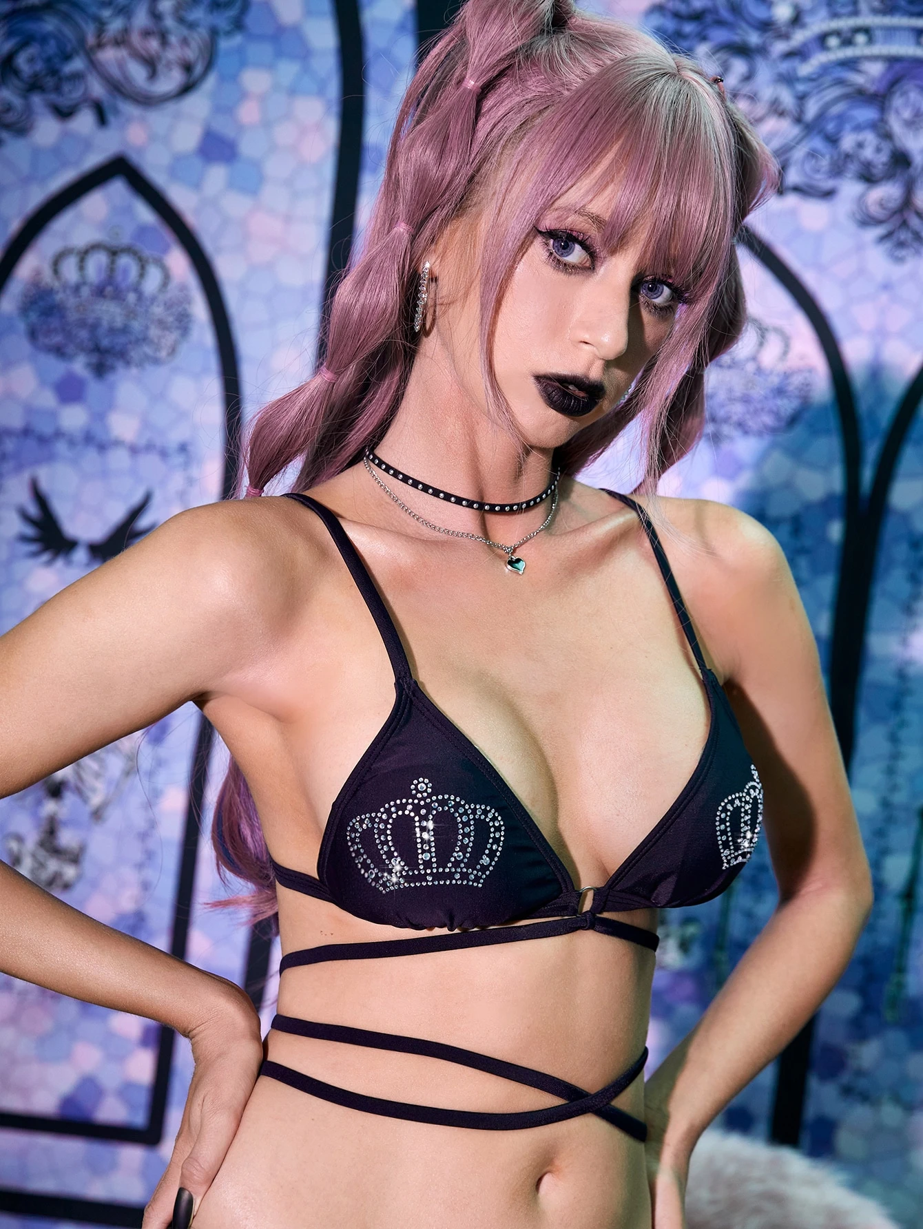 Triangel Bikini Top mit Krone Strass, Kreuzgurt