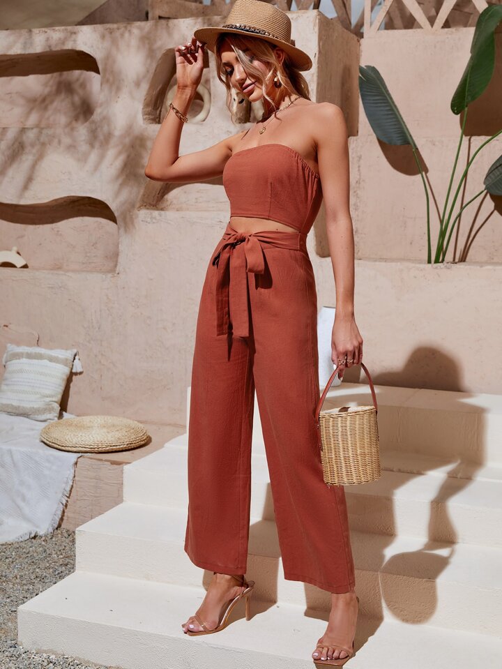 Tube Jumpsuit mit Ausschnitt, Gürtel