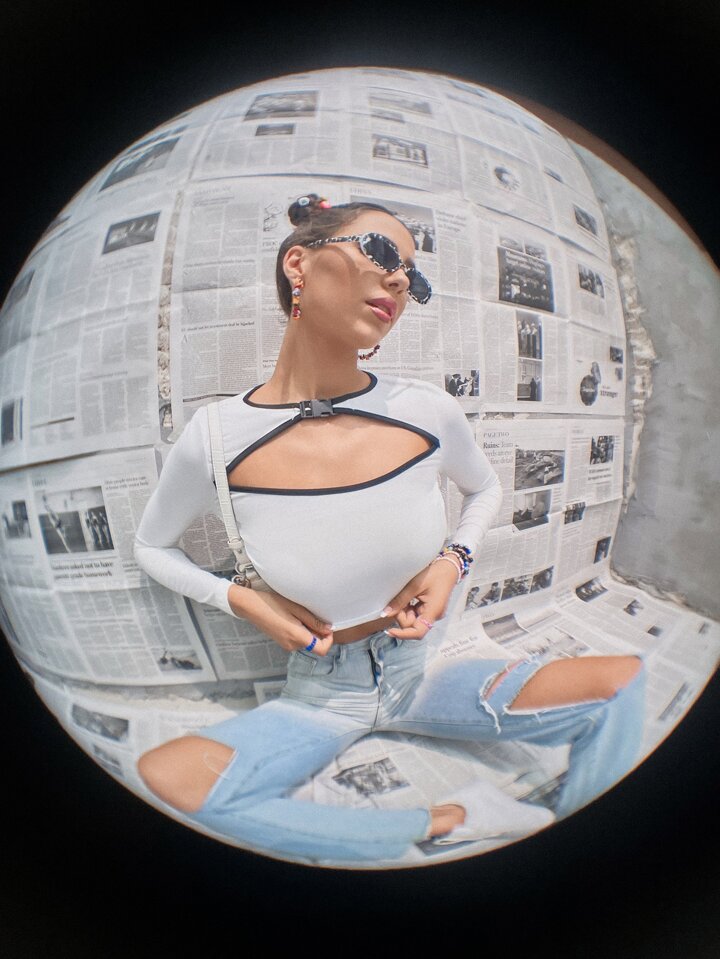 Crop Top mit Cut-Out vorne und Schnalle Detail