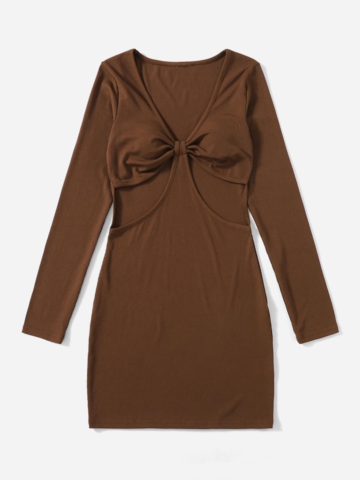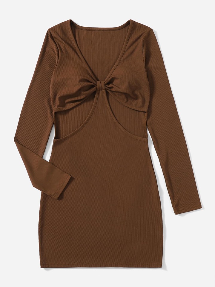 Geripptes Kleid mit Ausschnitt