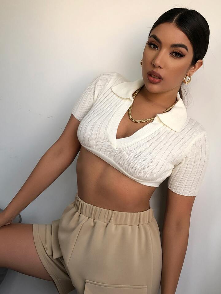 Rippenstrick Crop Top mit Cut-Out und Band hinten