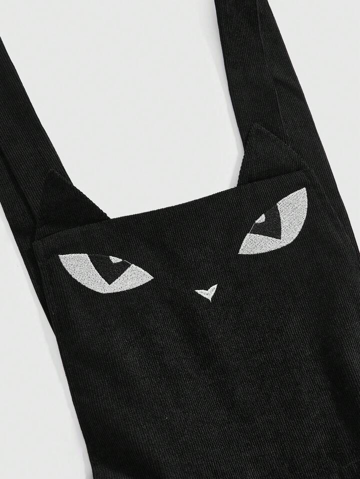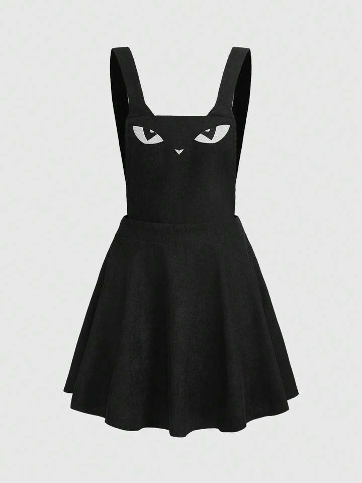 Süßes Gothic Katzen besticktes Trägerkleid für Frauen