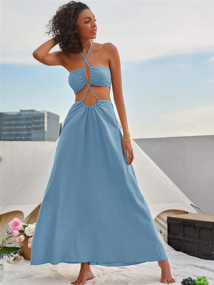 Rückenfrei Über Kreuz Cut Outs Schnürung am Rücken Reißverschluss Einfarbig Böhmisch Kleid