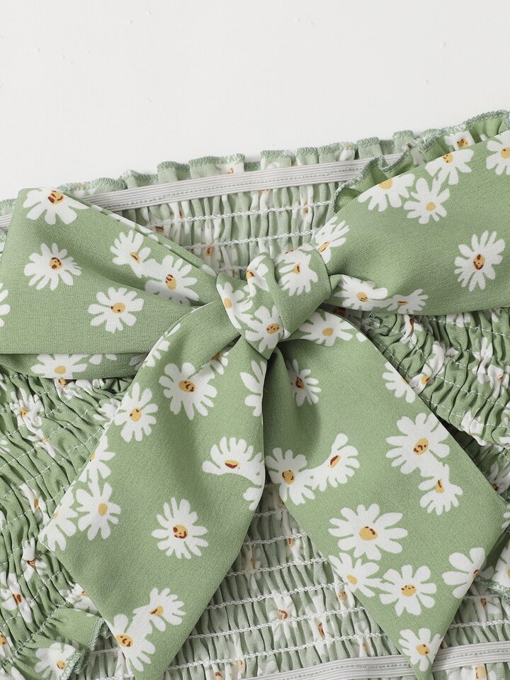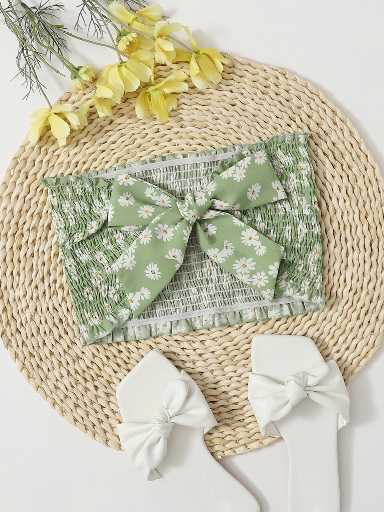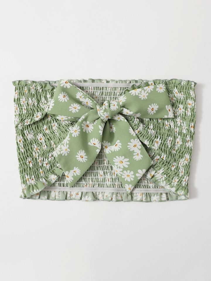 Tube Top mit Gänseblümchen Muster, Rüsche und Schleife