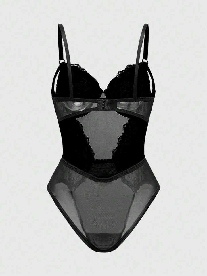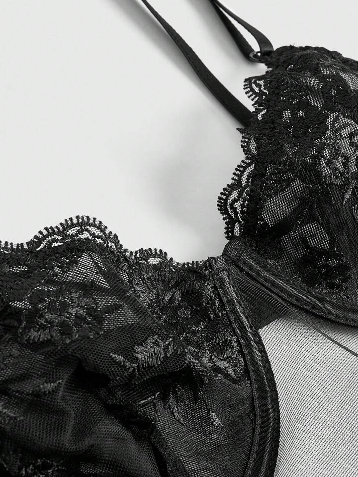Goth Dunkel gotische floralen Spitzen Draht-Bodysuit
