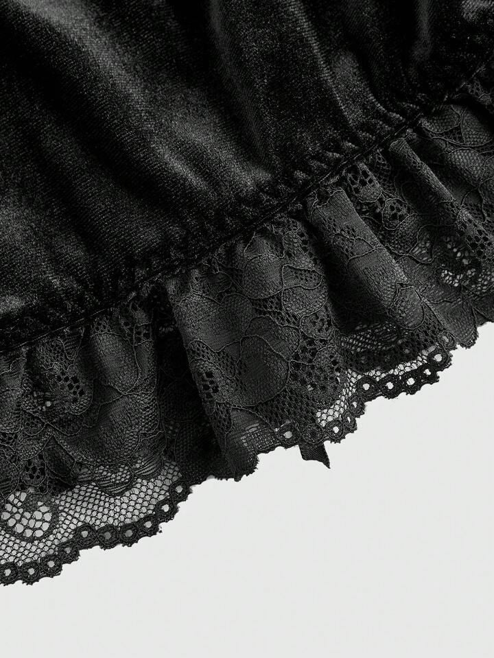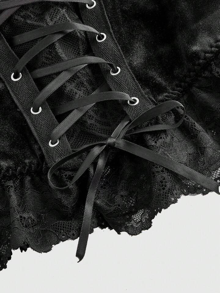 Goth Dunkel gotischer sexy Spinnennetz-Mesh- und Samt-Patchwork Crop Top