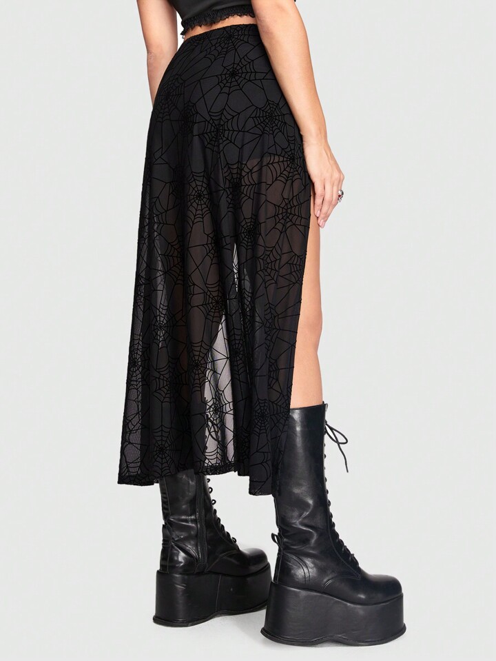 Goth Dunkelgotischer, stilvoller, sexy Fledermausrock mit Spinngewebemuster und hohem Schlitz für Frauen (mit Shorts)