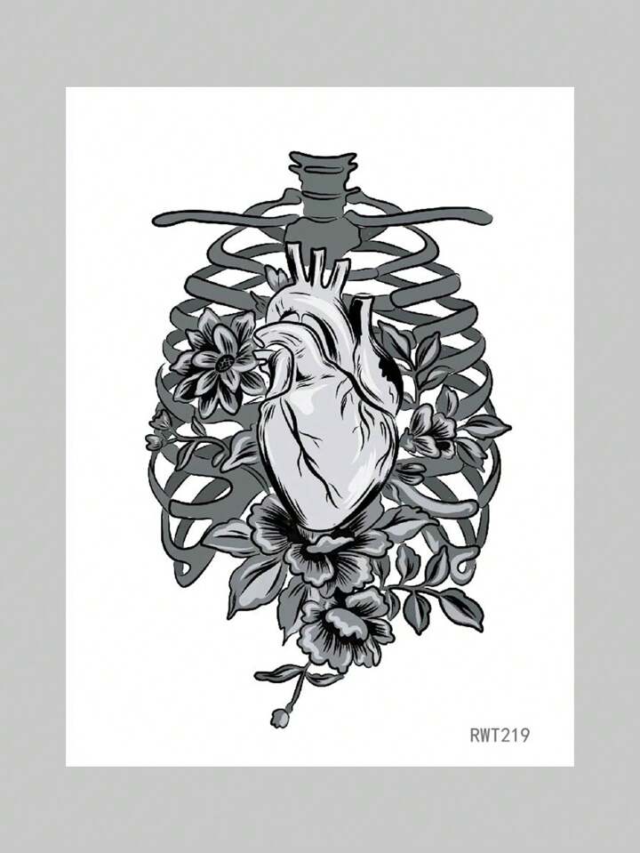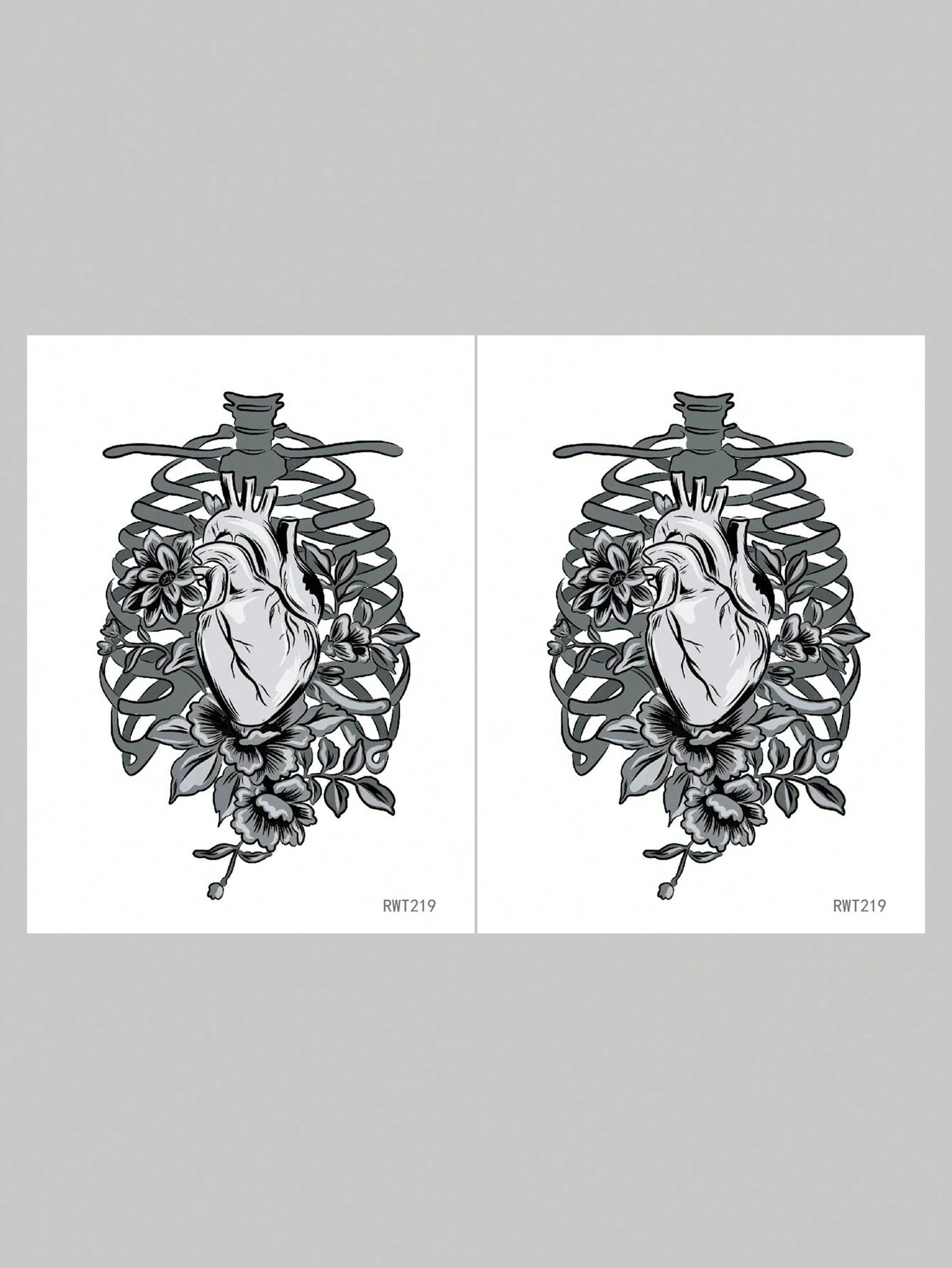 Debiesn 2 Blätter Tattoo Aufkleber Skelett & Herz Muster,
