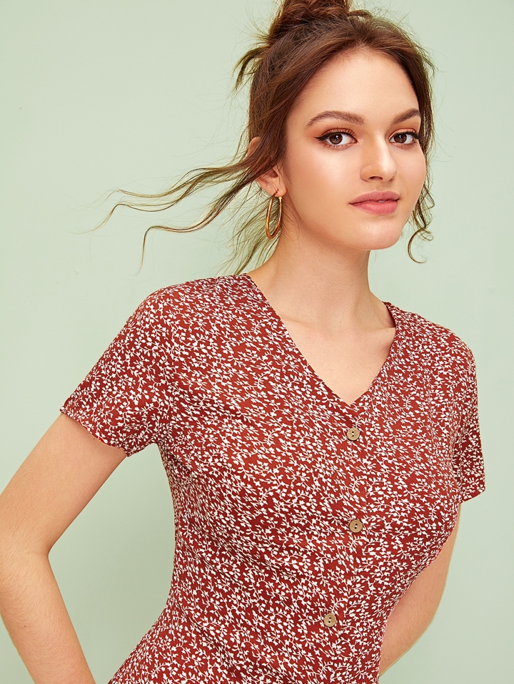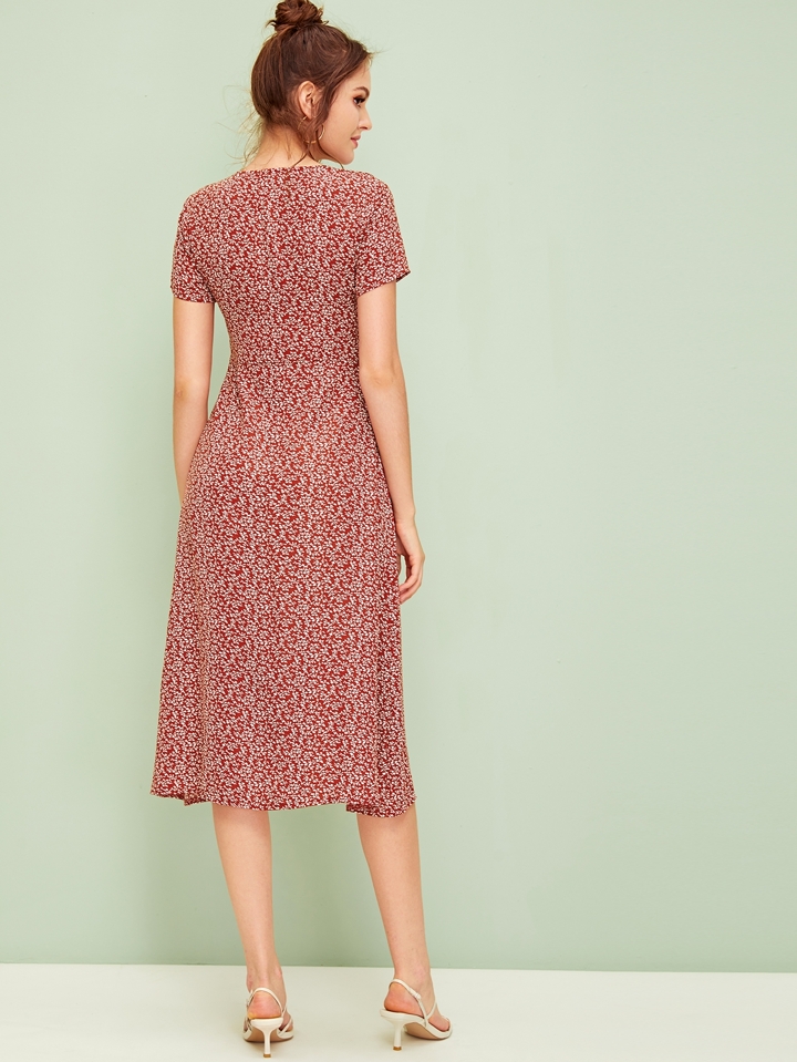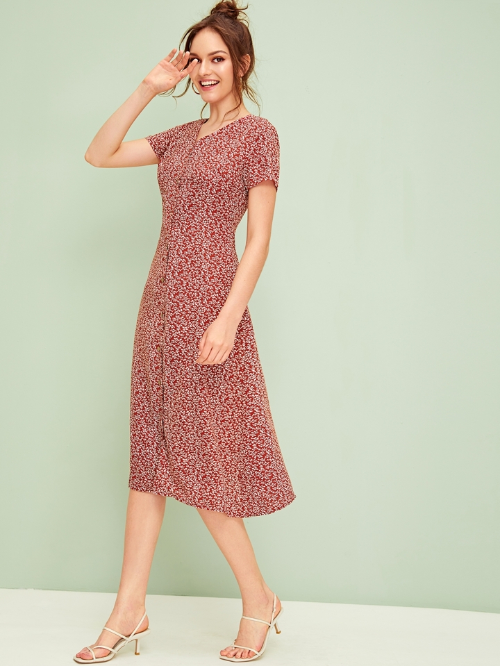 Midi Kleid mit Blumen Muster und Knöpfen vorn