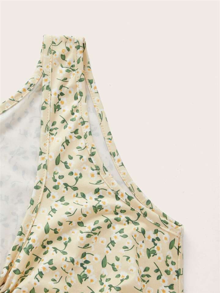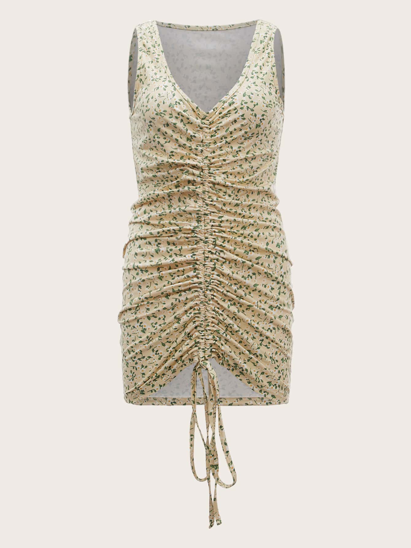 Figurbetontes Kleid mit Blümchen Muster, Tunnelzug, Rüschen