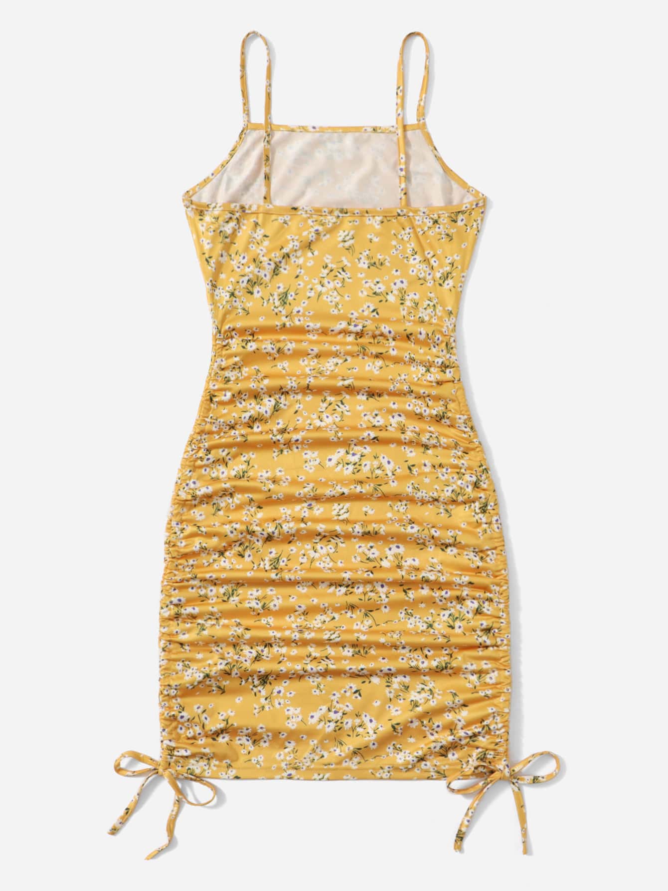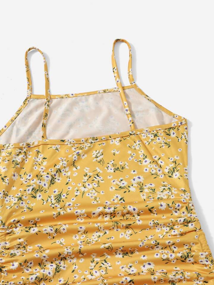 Cami Kleid mit Blümchen Muster, seitlichem Schnürzug