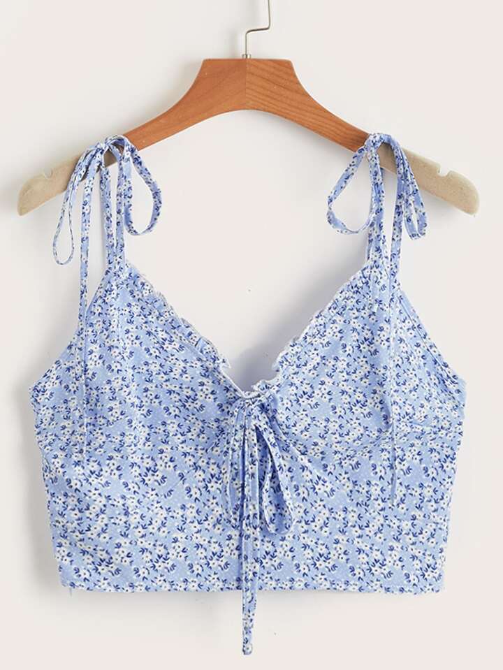 Cami Top mit Blümchen Muster, Rüschen, Band auf Schulter