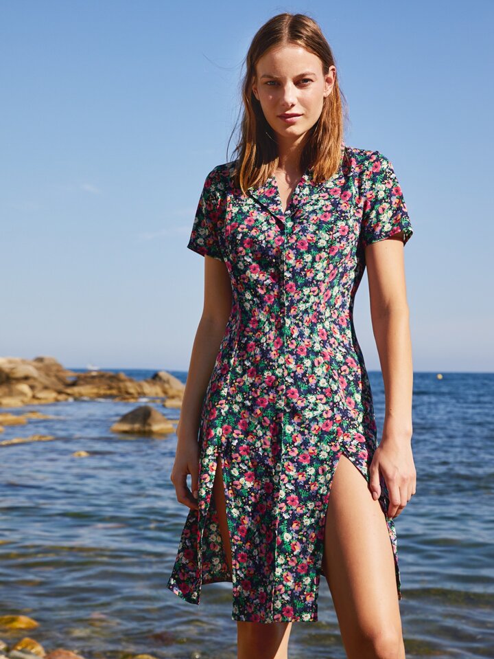 Hemdkleid mit Blümchen Muster und M-Schlitz am Saum