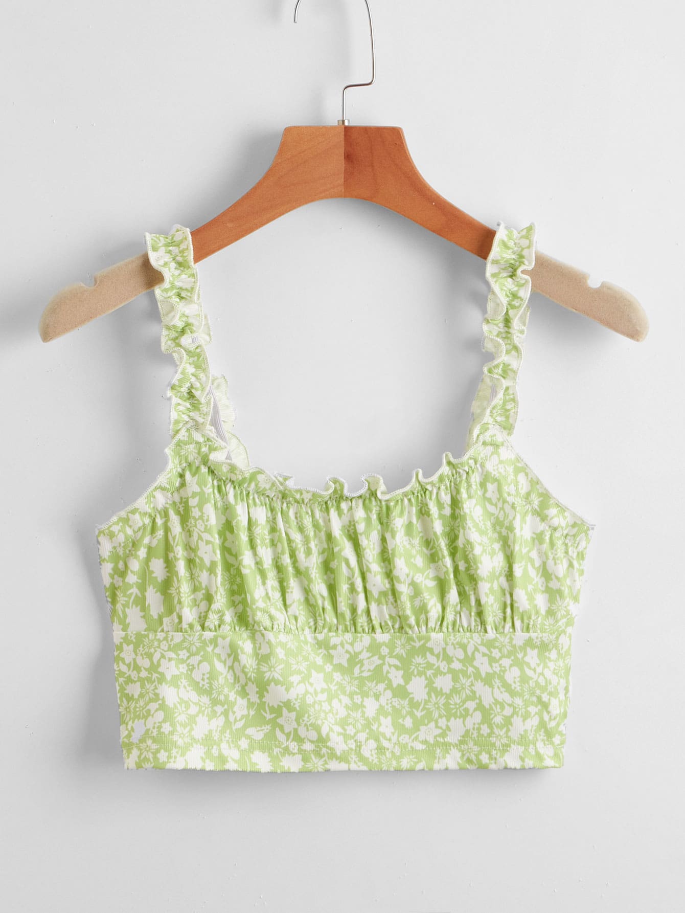 Top mit Blümchen Muster, Rüschen, Rüschenbesatz