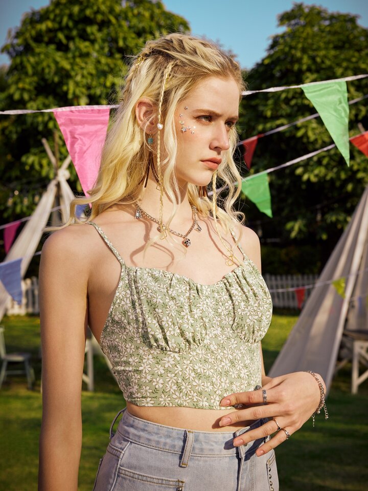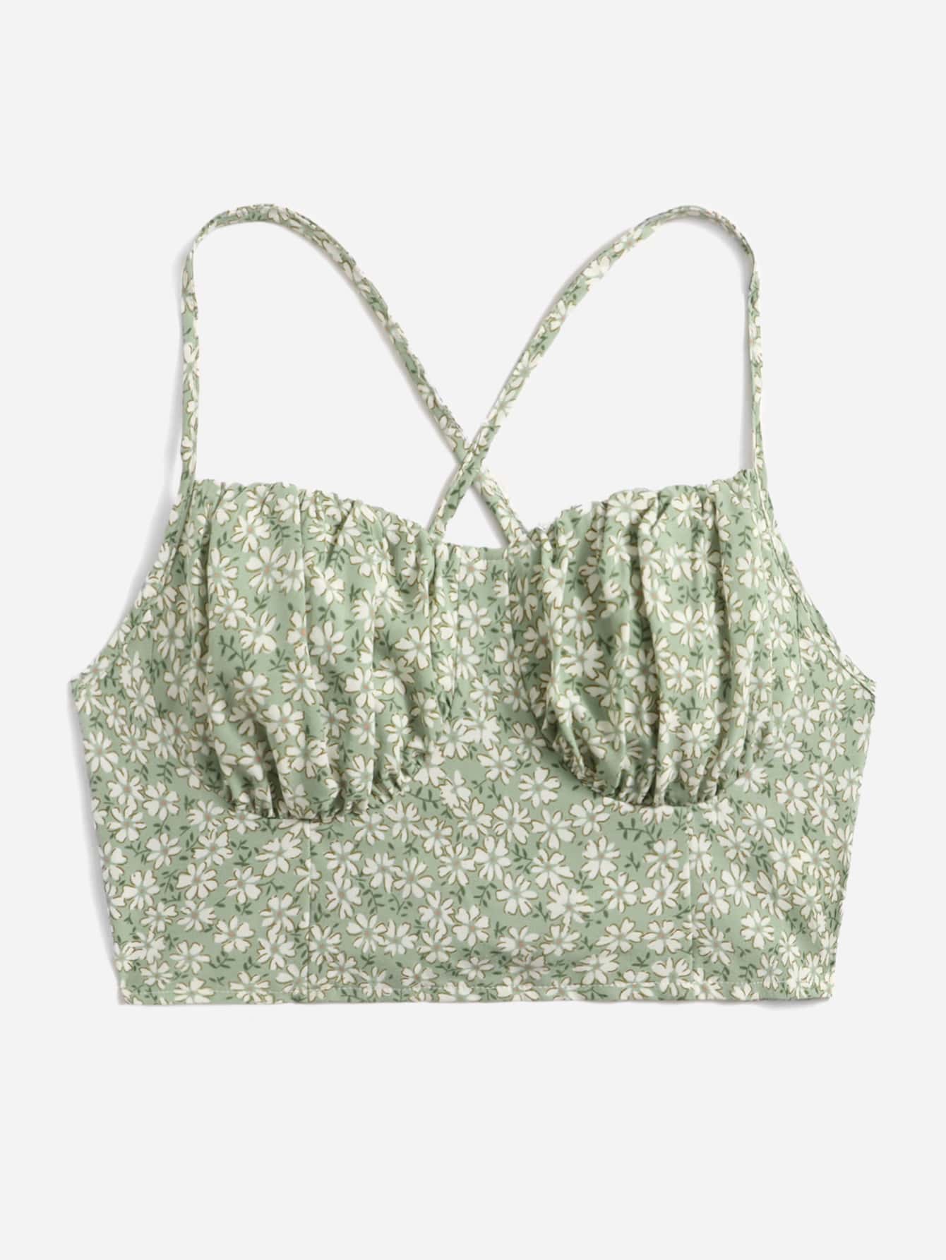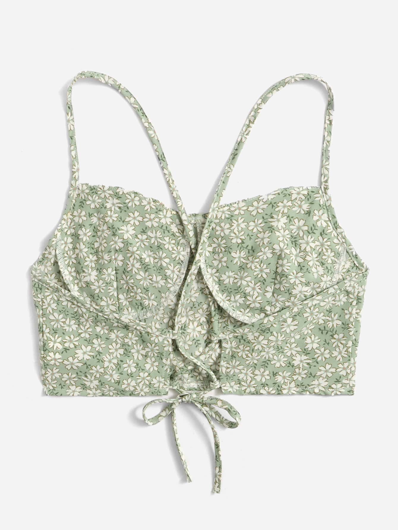 Cami Top mit Blümchen Muster, Rüschen, Band hinten