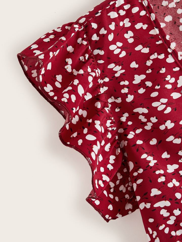 Top mit Blümchen Muster, Band vorn und Raffungsaum