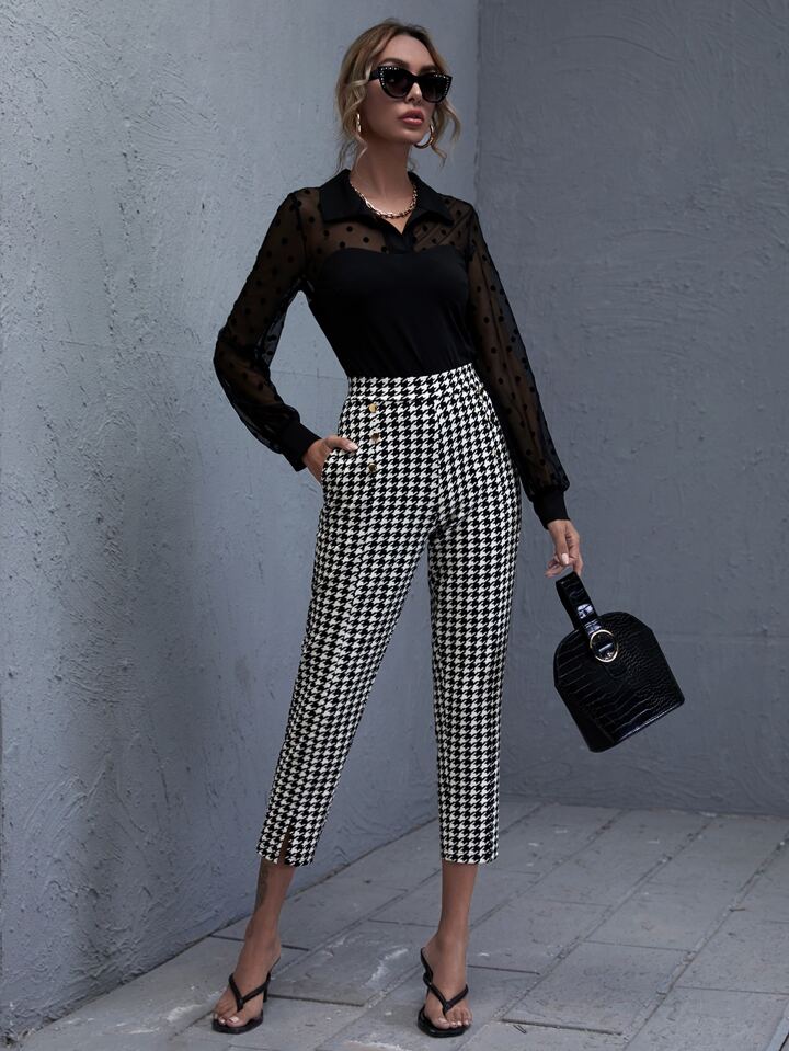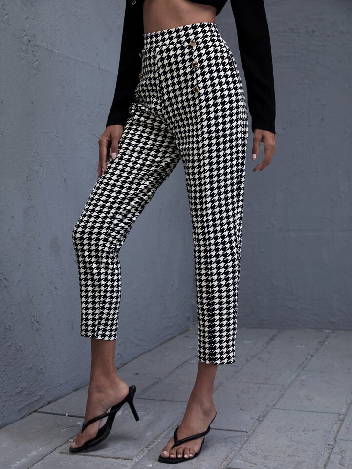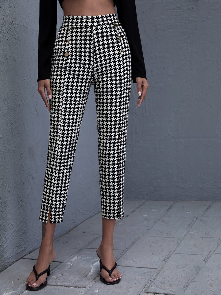 Hose mit doppelten Knopfleisten, Schlitz und Hahnentritt Muster