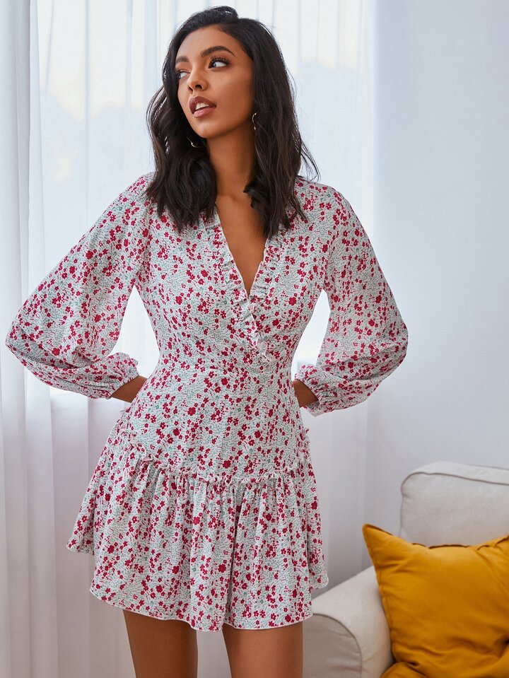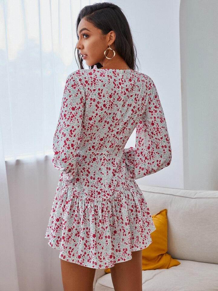 Double Crazy Kleid mit Rüschen und Gänseblümchen Muster