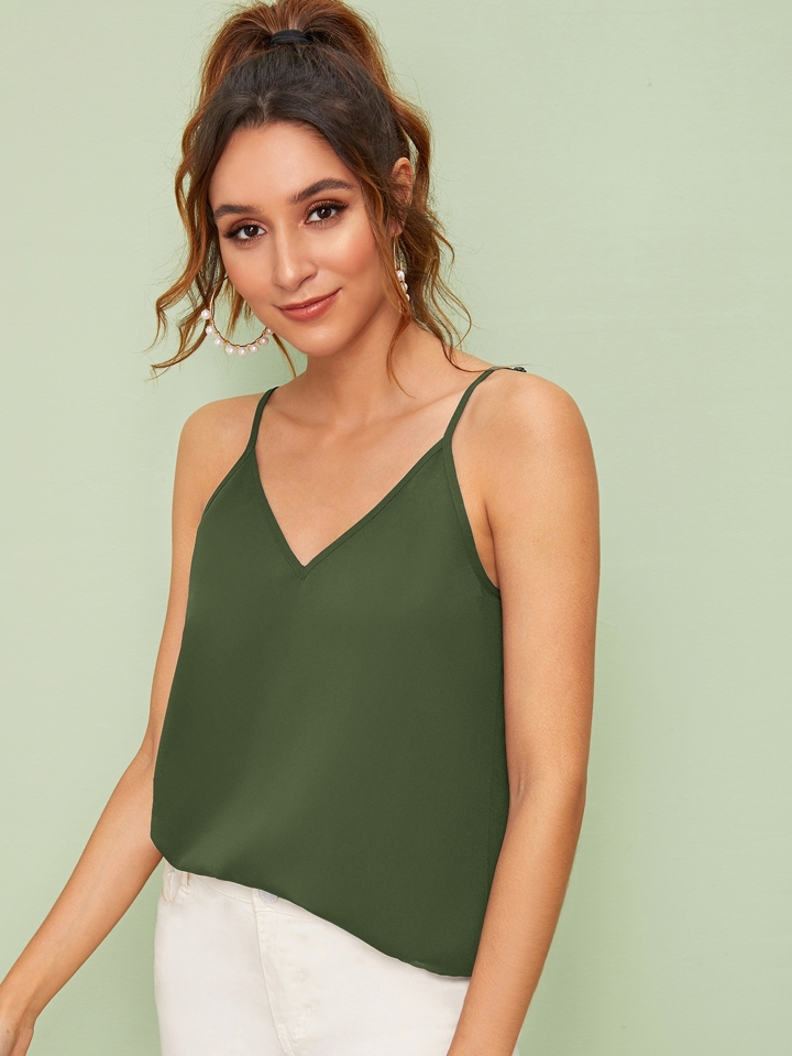 Einfarbiges Cami Top mit doppelten V-Kragen