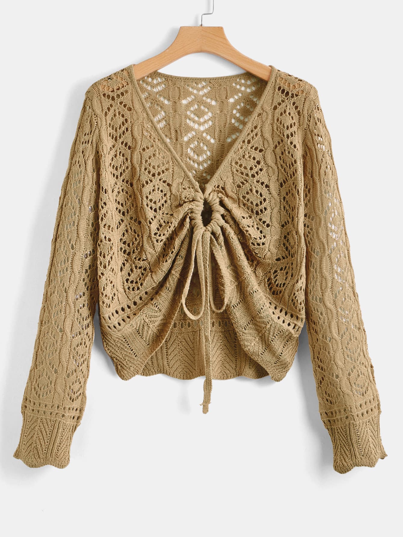Pullover mit Schnürung vorne, Offener Strick