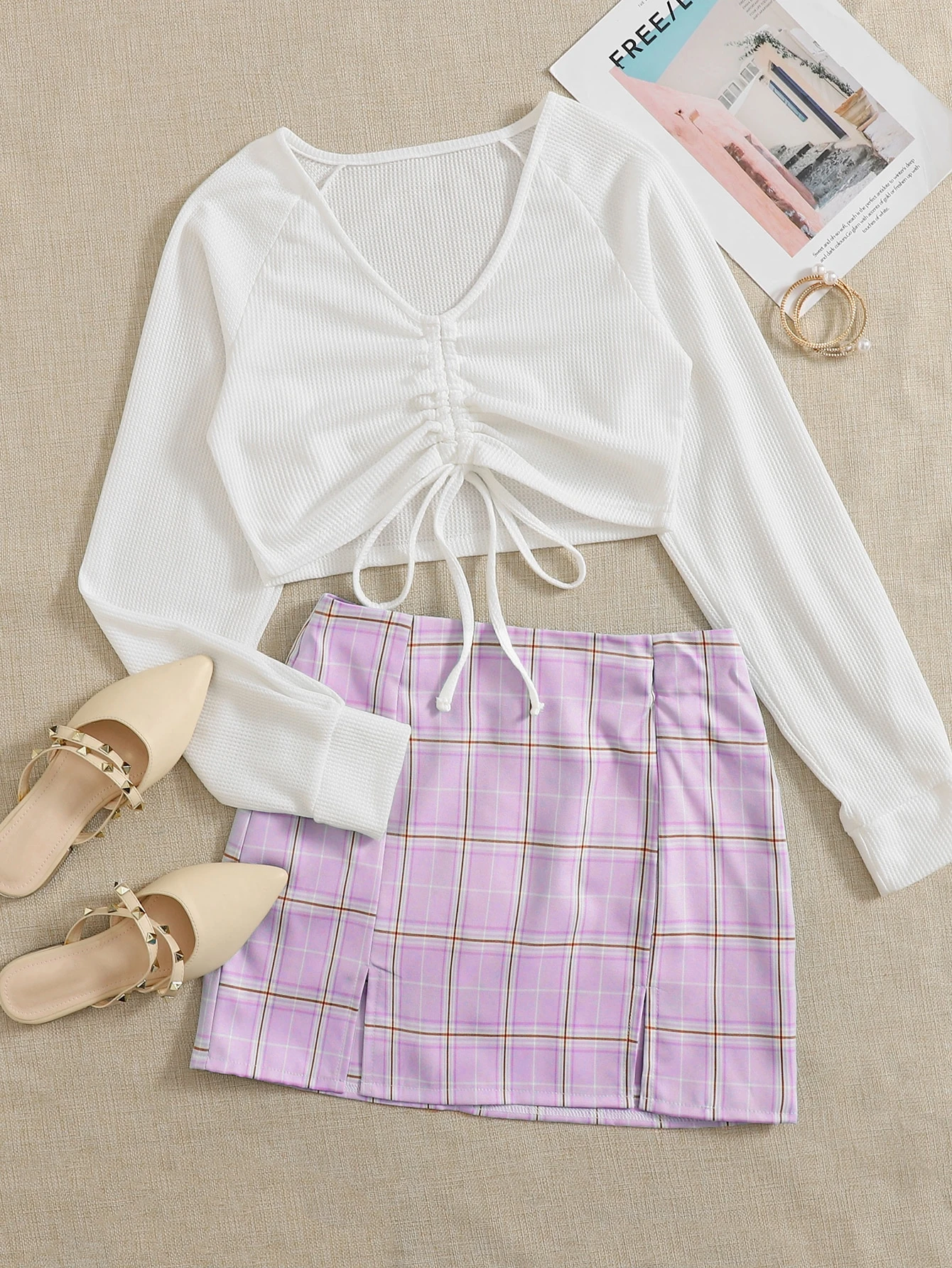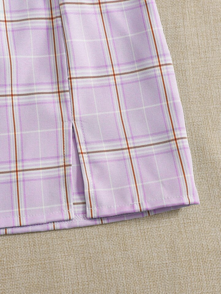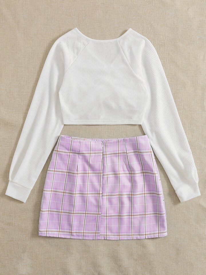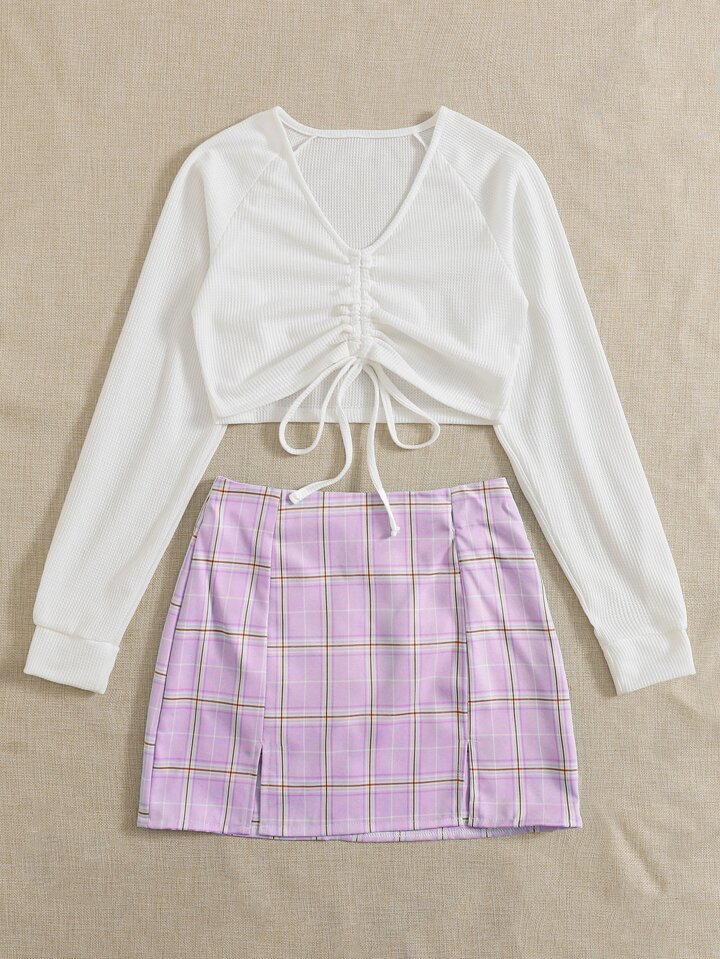 Top mit Schnürung & Rock mit Karo Muster und Schlitz
