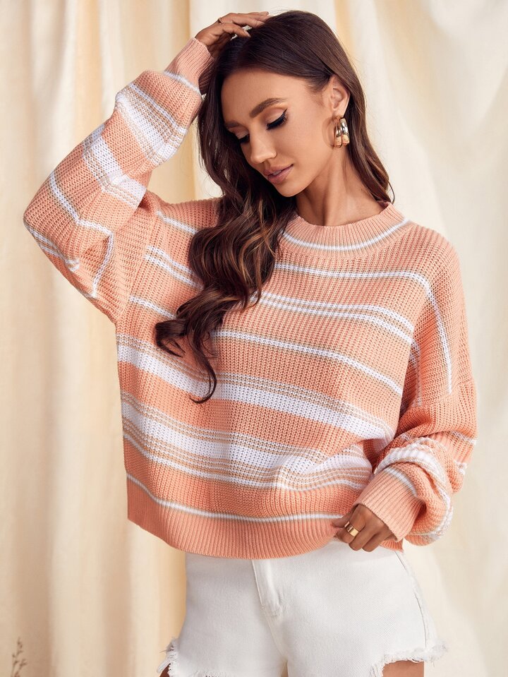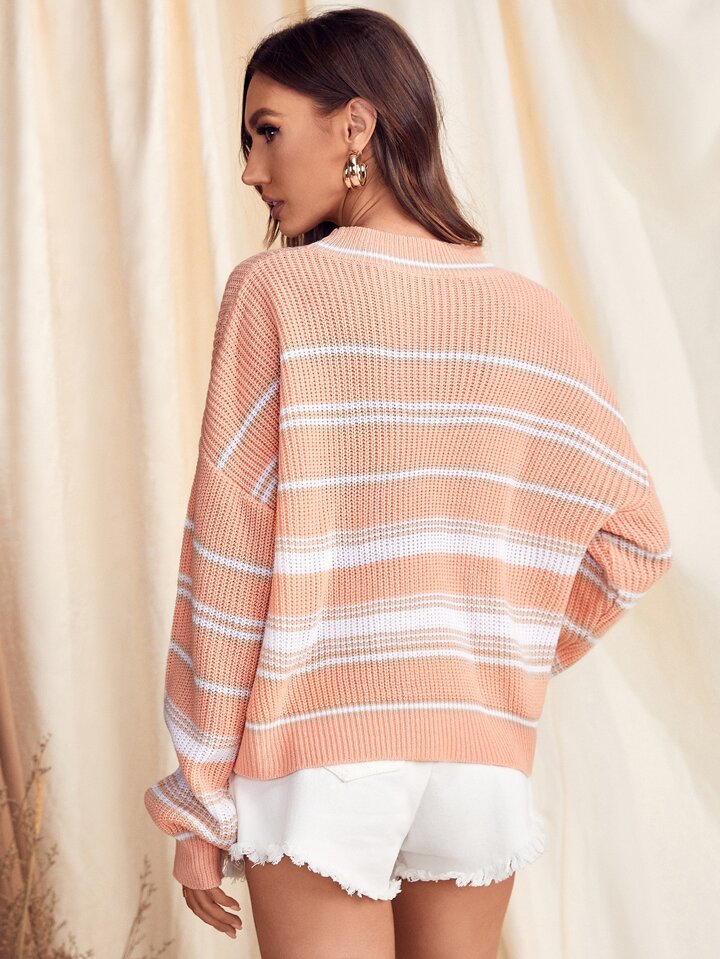 Drop Shoulder Pullover mit Streifen Muster