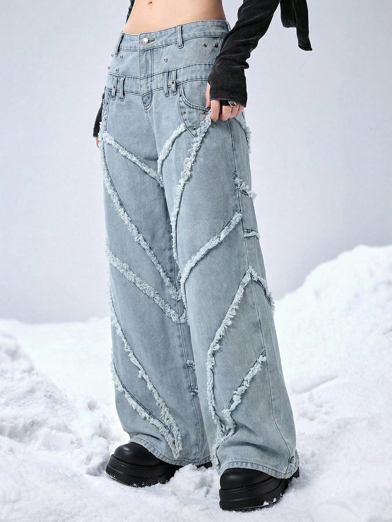 EDITION Verwaschen ausgestellte Taille Niedrige Taille Damen Jeans