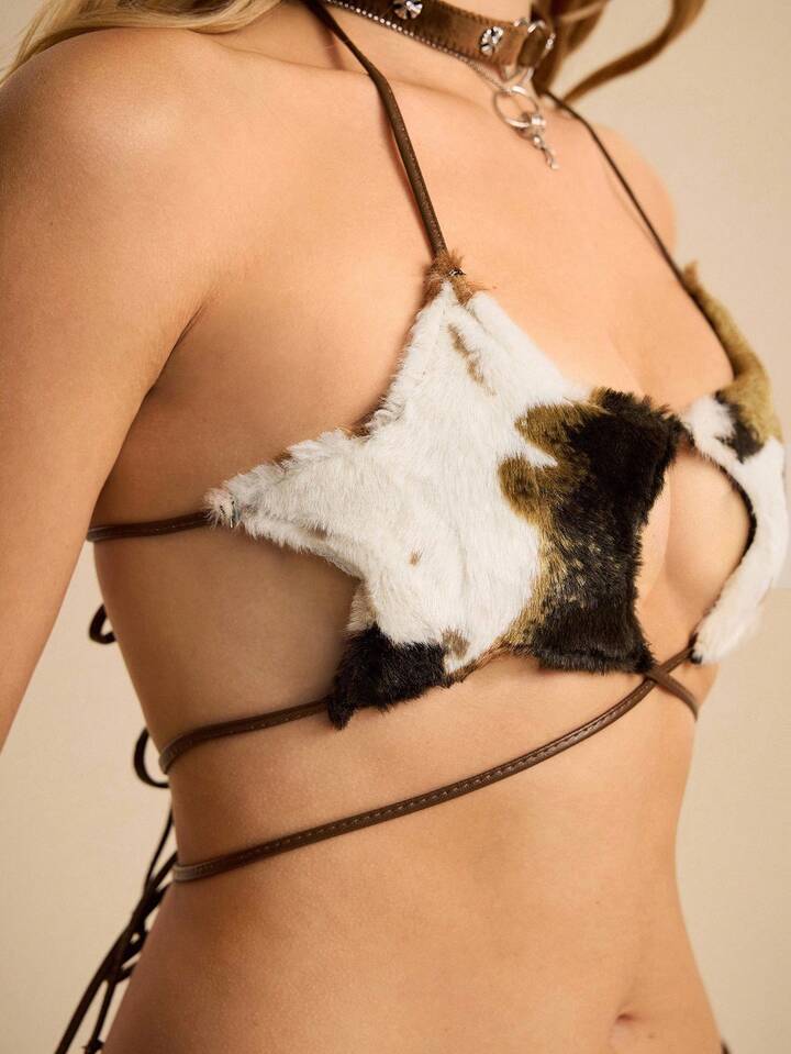 EDITION Damen Retro Sexy Cowgirl Musik Festival Western Kunstfell Pentagramm Träger Crop Top