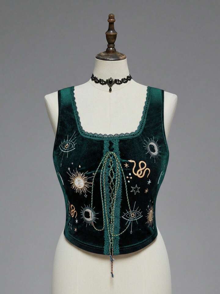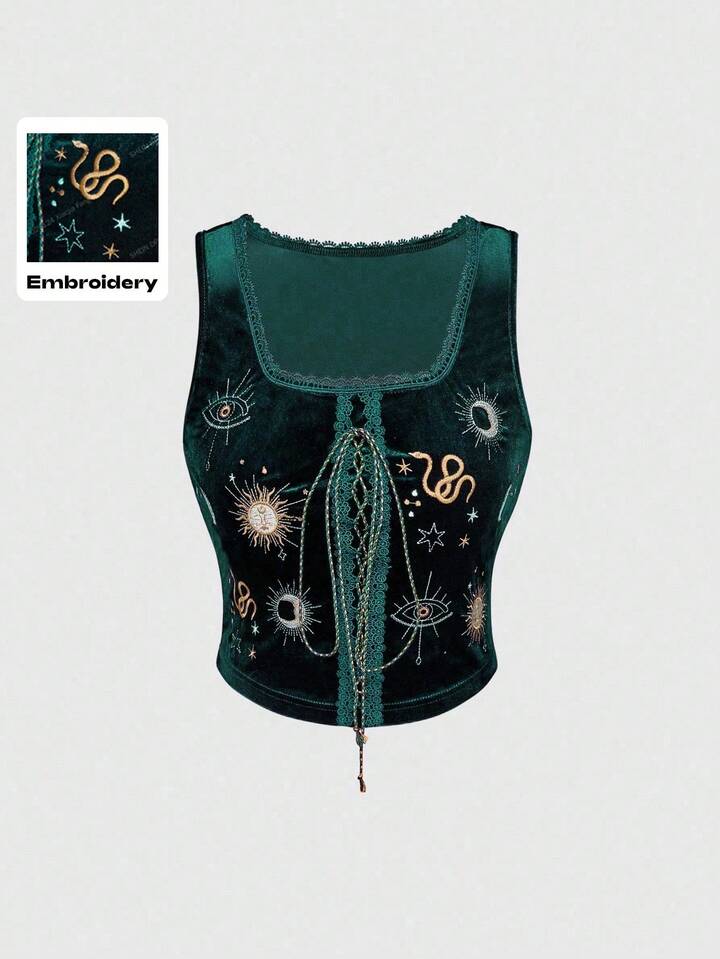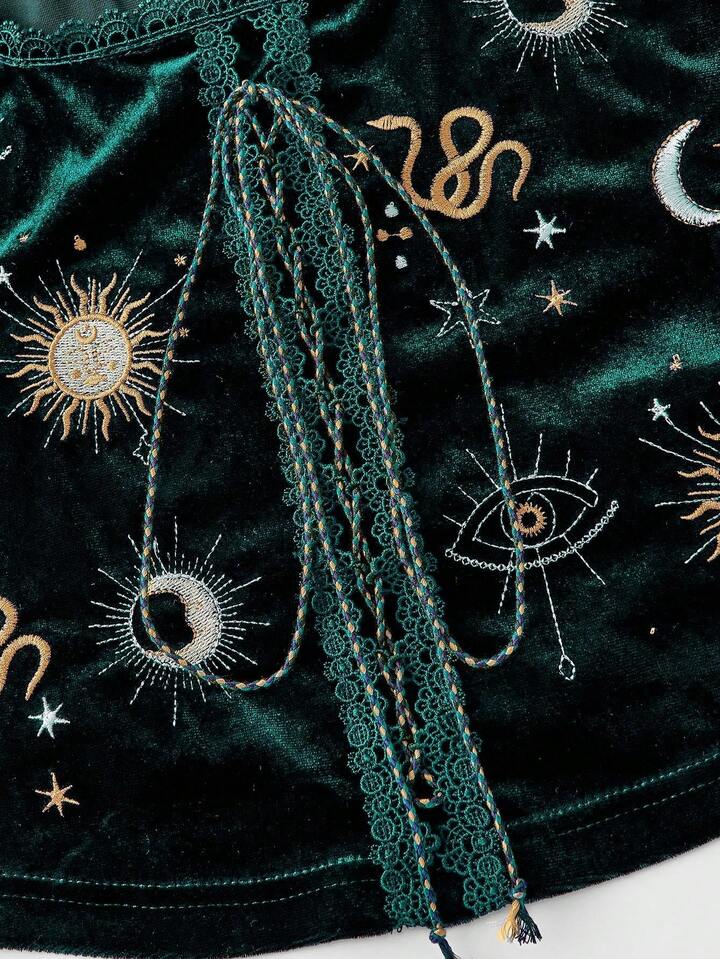 EDITION Damen Hexen-Tag Mond & Stern bestickte Samt Figurbetontes Trägertop