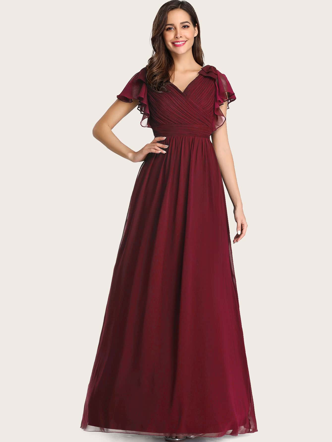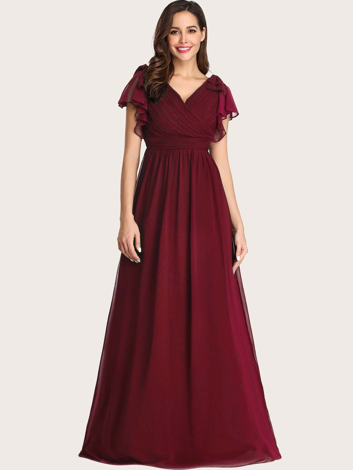 EVERPRETTY Schmetterlingärmel Raffung Oberteil Chiffon Ballkleid, Brautjungfernkleid