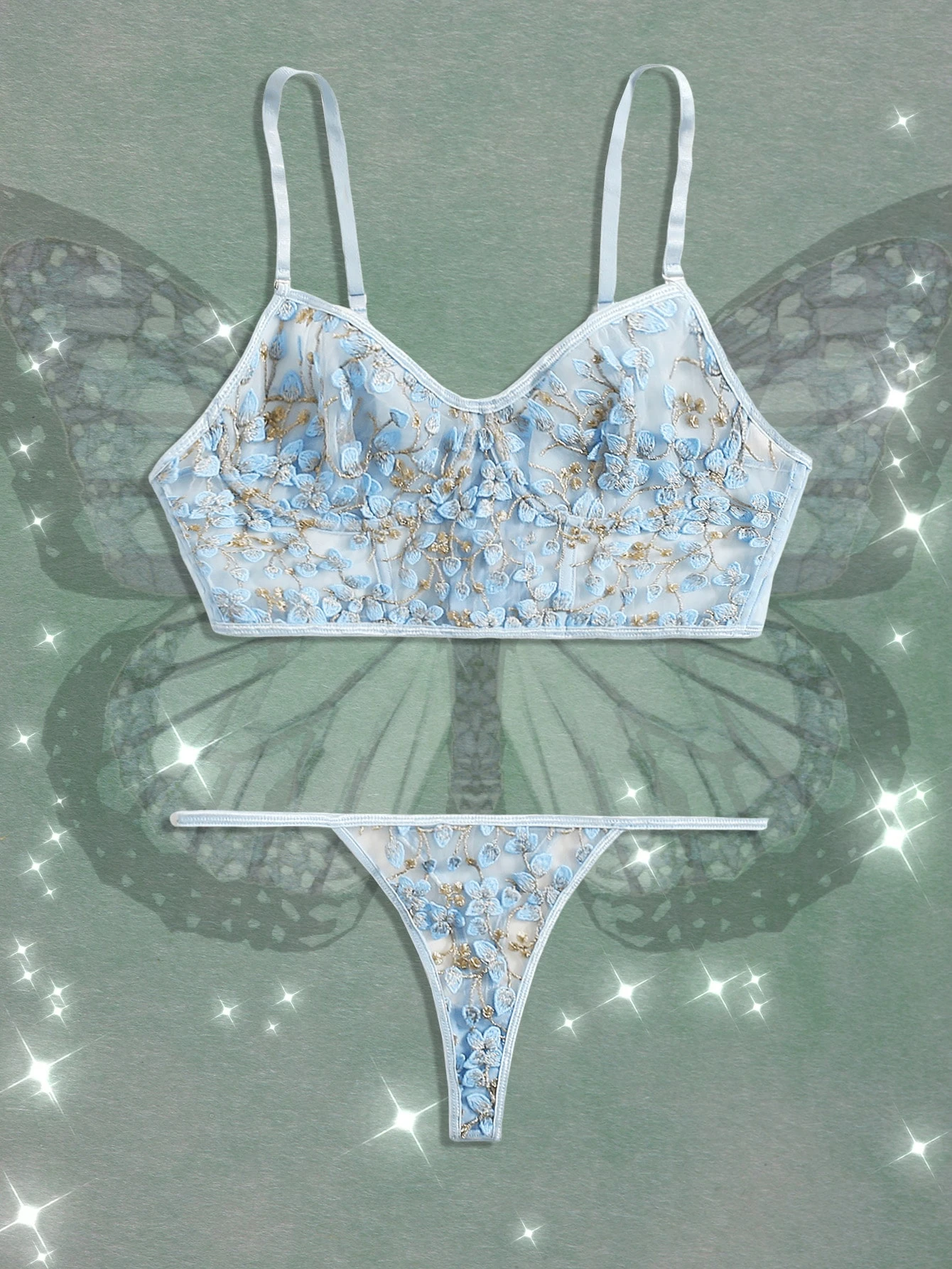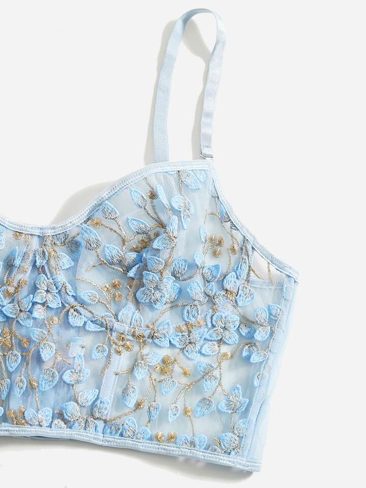 Dessous Set mit gesticktem Netz, Bügel