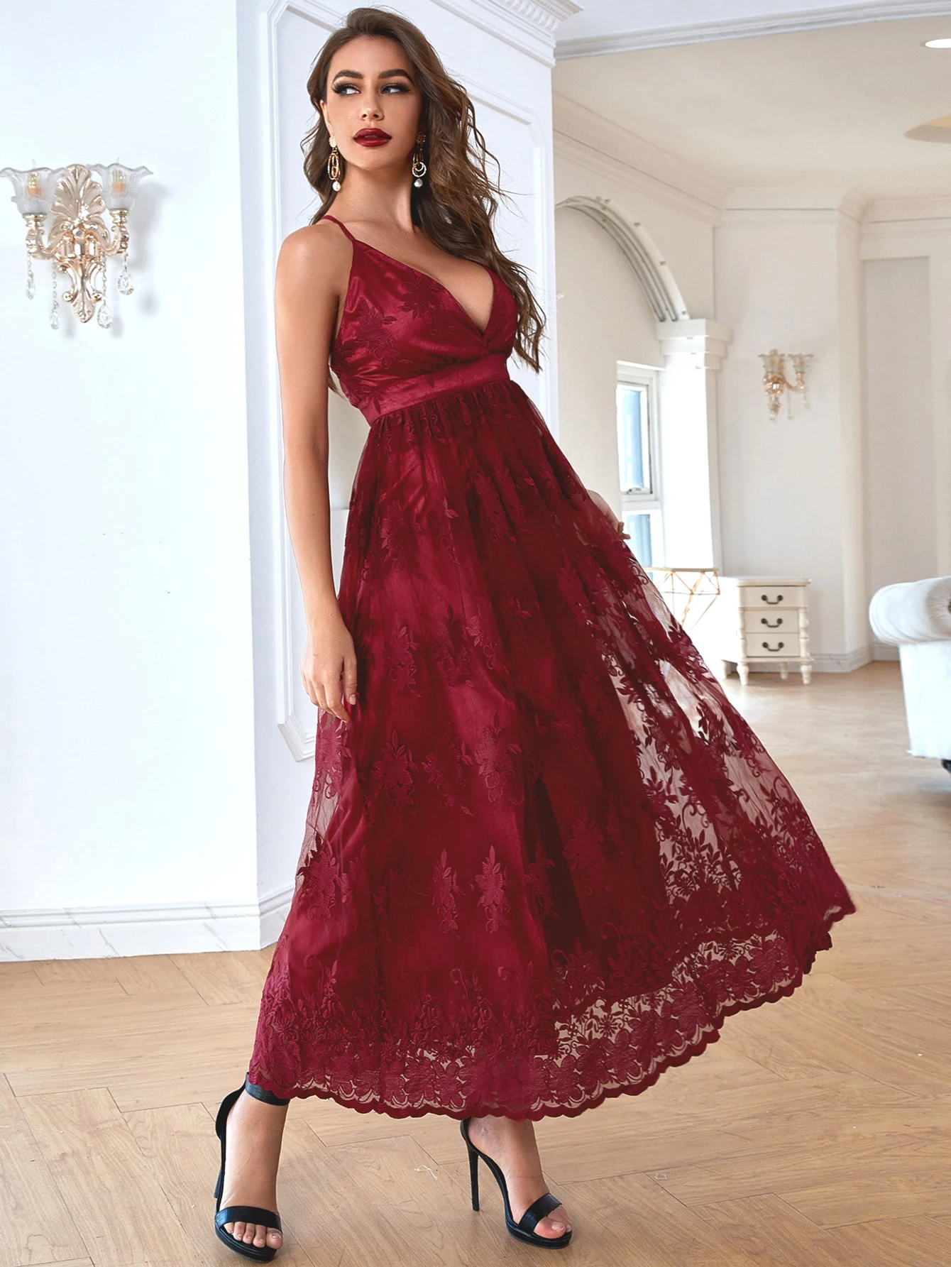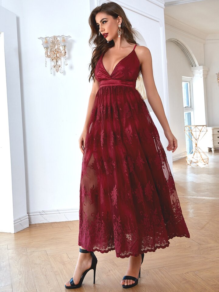 Cami Ballkleid mit Stickereien, Netzstoff und Kreuzgurt