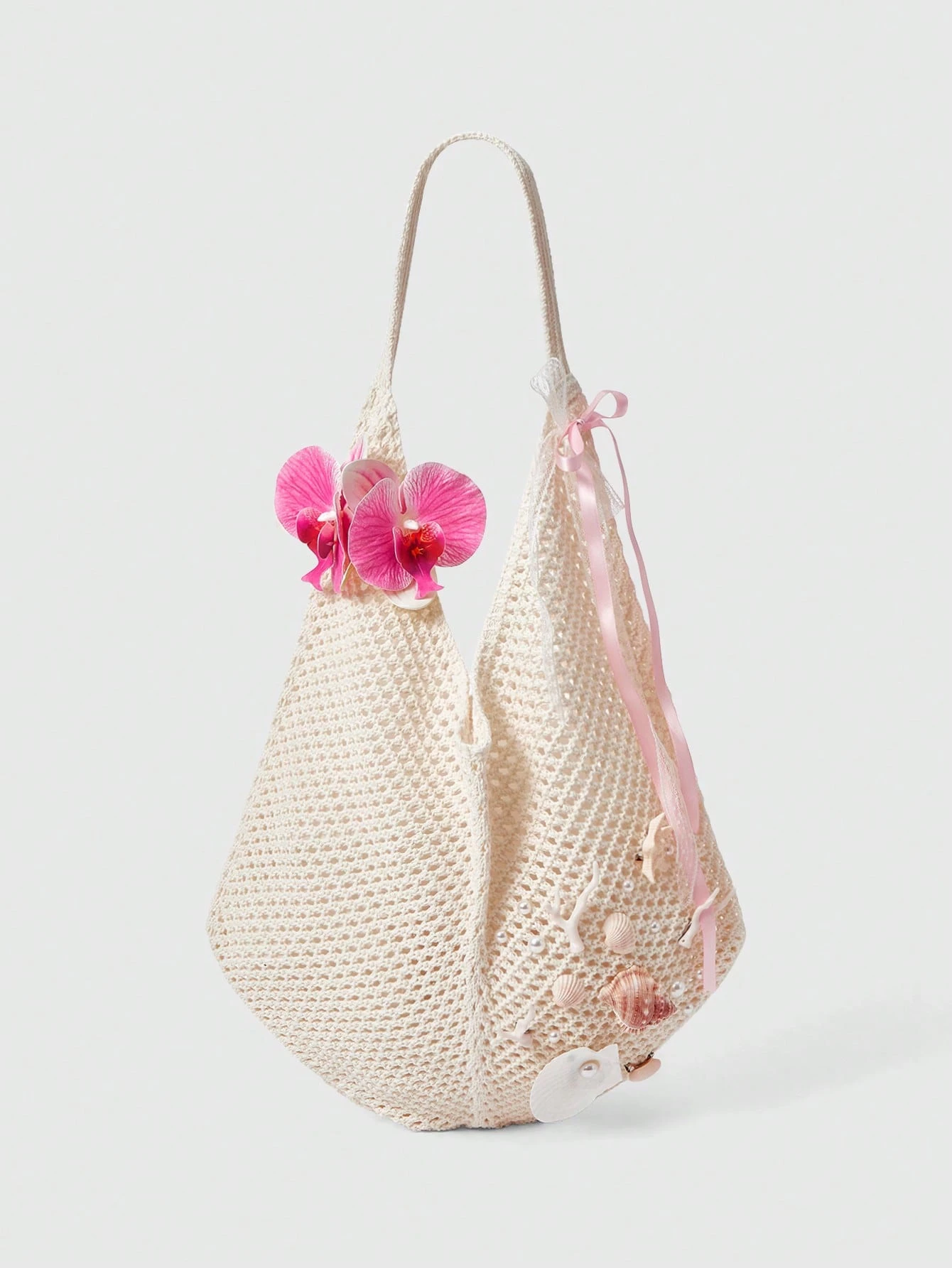 Fairycore 1 Set beige gewebte Strandtasche & Accessoires, modische personalisierte Strandresort-Stil Damentasche (beinhaltet 1 Tasche und 1 Set Accessoires)