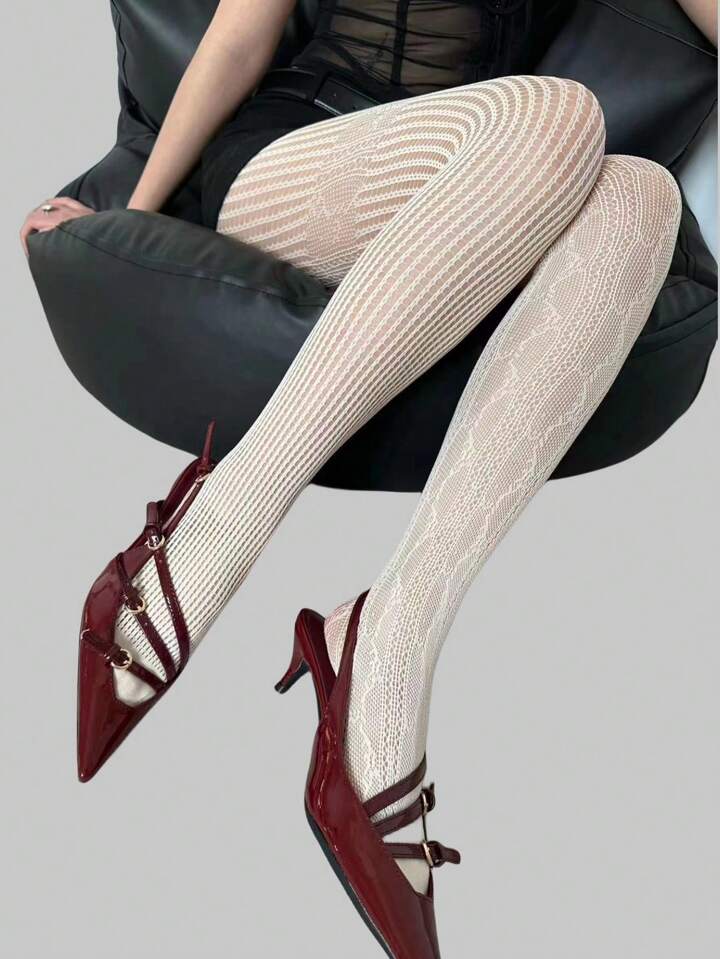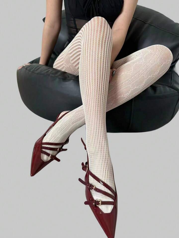 Fairycore 1 Paar Weiß Provokative Hohe Taille Halterlose Strümpfe, Durchbrochenes Fischnetz Design, Geeignet Für 4 Jahreszeiten