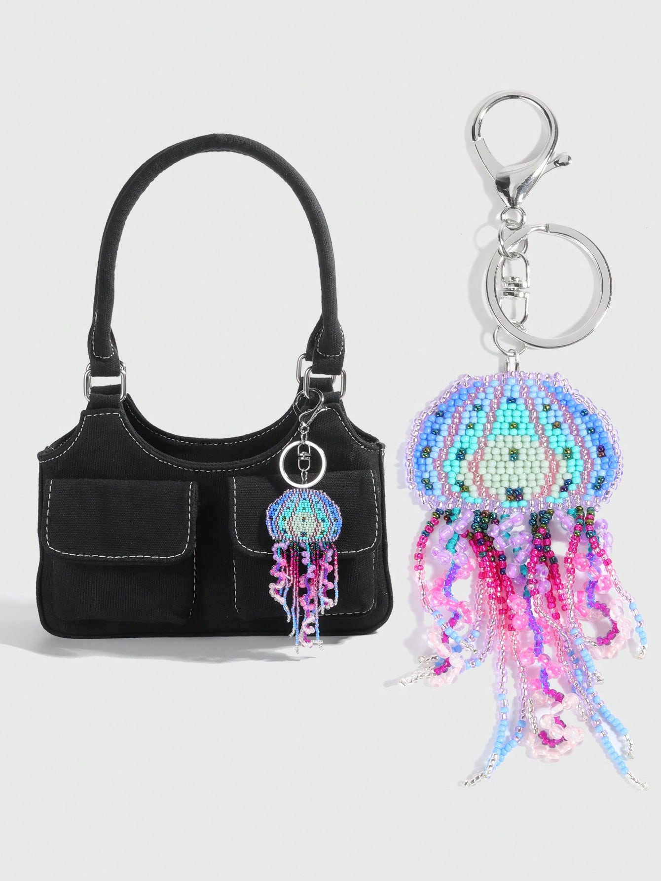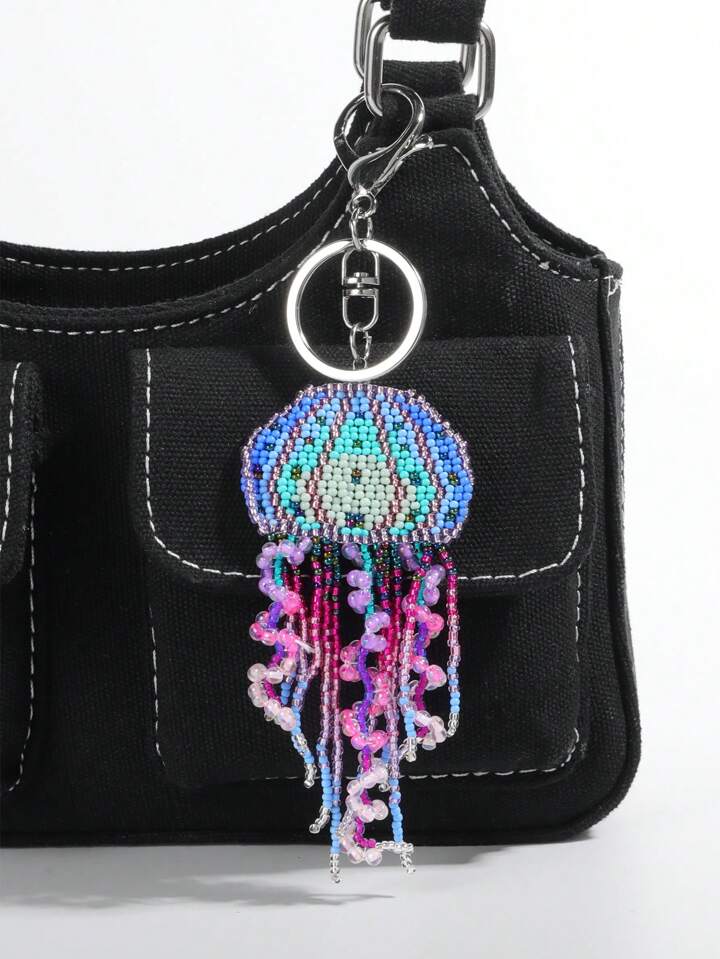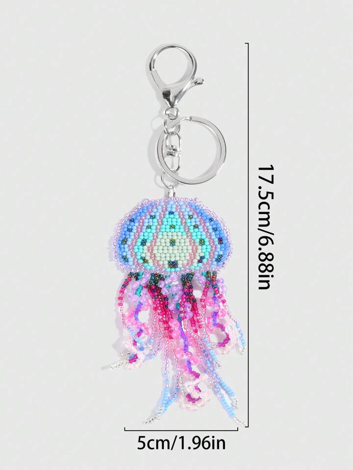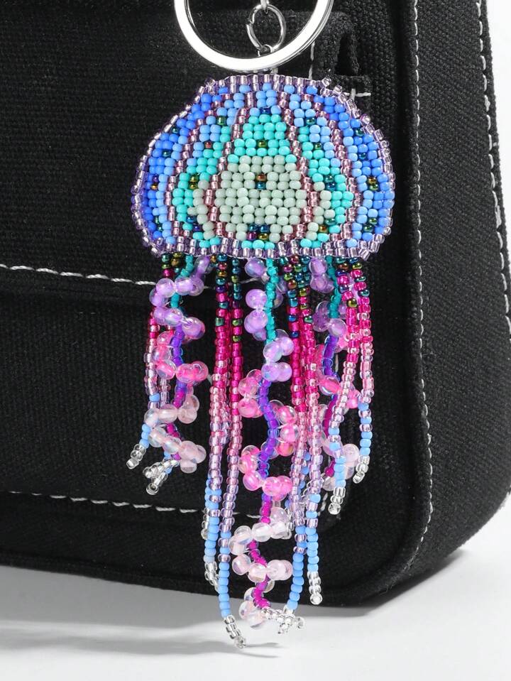 Fairycore 1 Stück farbenfroher, bohemian-artiger, handgemachter, perlenbesetzter Quasten-Quallen Schlüsselanhänger, Strandurlaubs-TaschenAnhänger