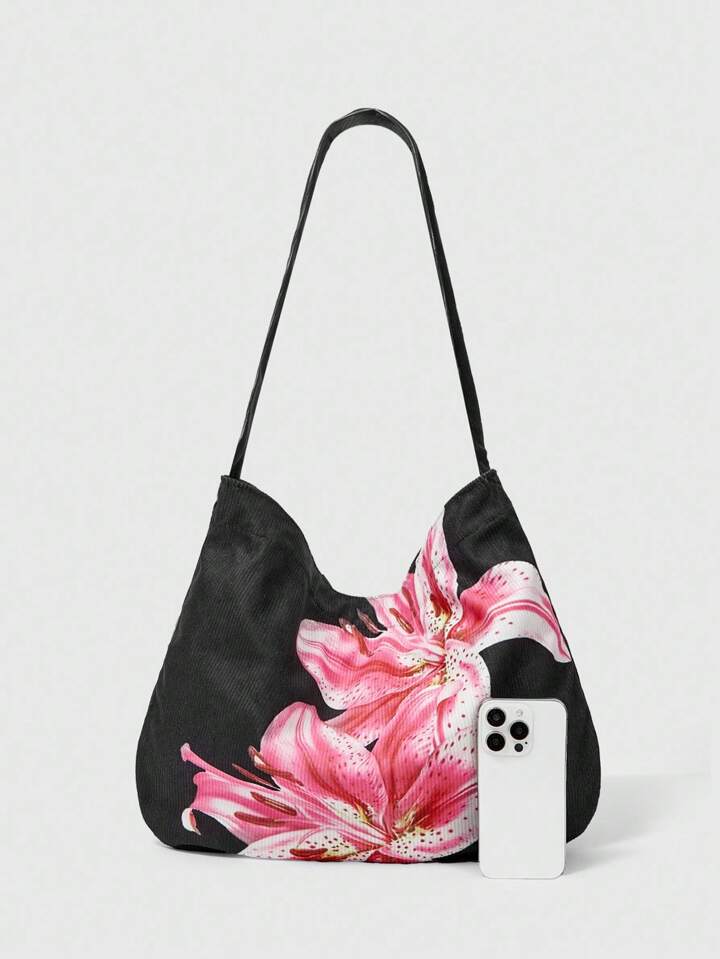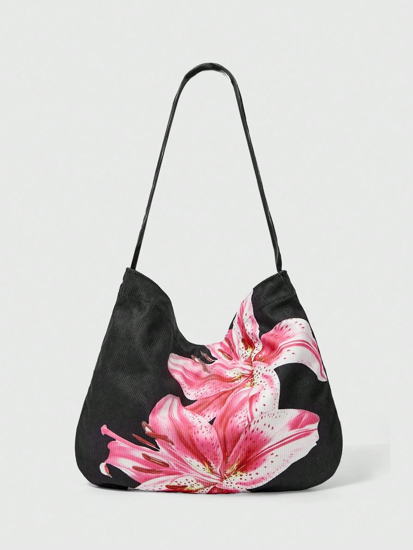 Fairycore 1 Stück dunkelrosa Lilien Schultertasche, geeignet für Camping, Reisen, Einkaufen, Pendeln und andere Anlässe