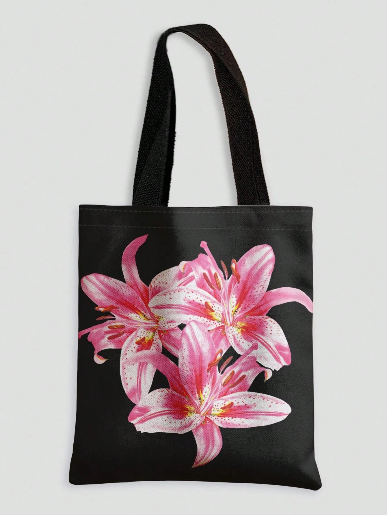 Fairycore 1 Stück beidseitig bedruckter großer Leinwand Shopper mit Blumenmuster, vielseitig einsetzbar für Pendeln und Urlaub