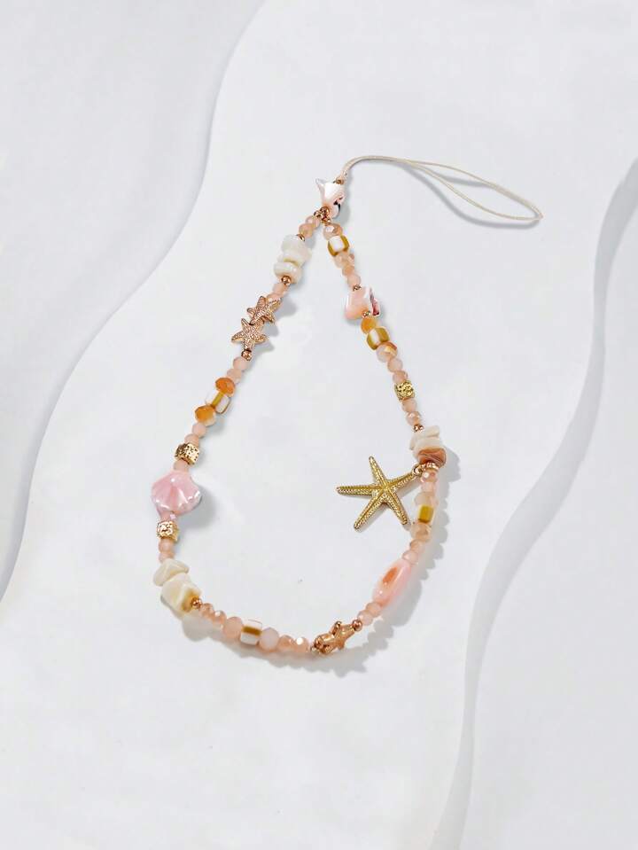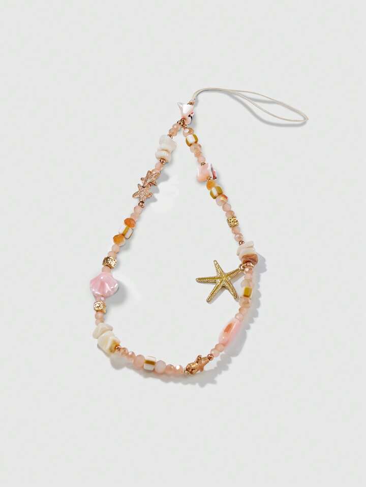 Fairycore 1 Stück DIY selbstgemachter Kamera-Trageriemen aus Seemuscheln, frisch und schlicht, Handybandschlaufe, Sommer-Meersalz-Perlen-Kette, anti-verloren