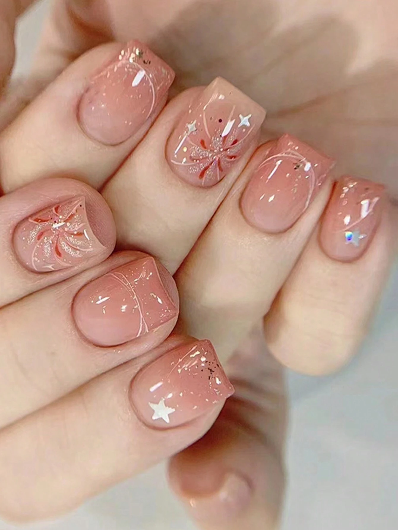 Fairycore 24 Stücke Kurze Quadratische Feuerwerk Glitter Voll Bedeckte Falsche Nägel Geeignet Für Frauen Und Mädchen