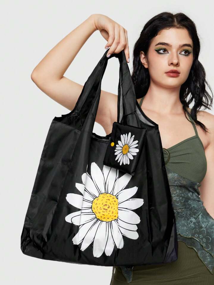 Fairycore 2 Stück Große Aufbewahrungstasche Mit Gänseblümchen-cartoon-muster, Faltbare Einkaufstasche Mit Geldbörse