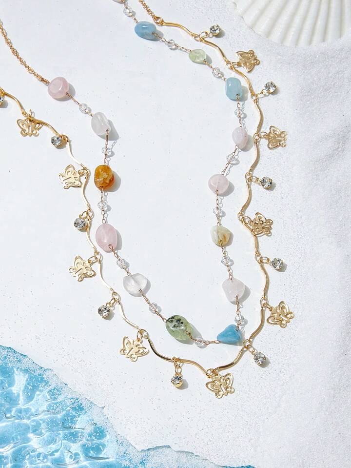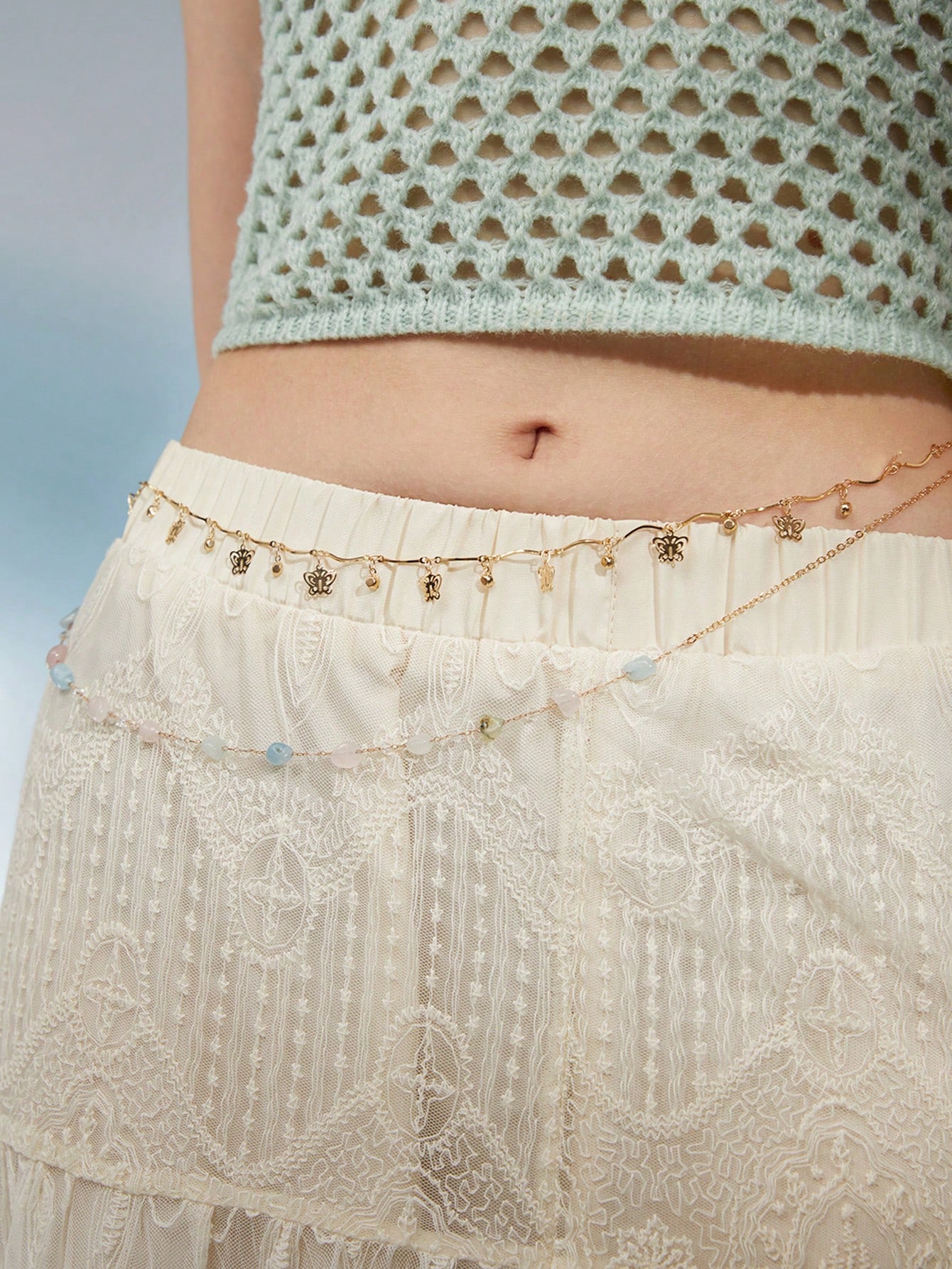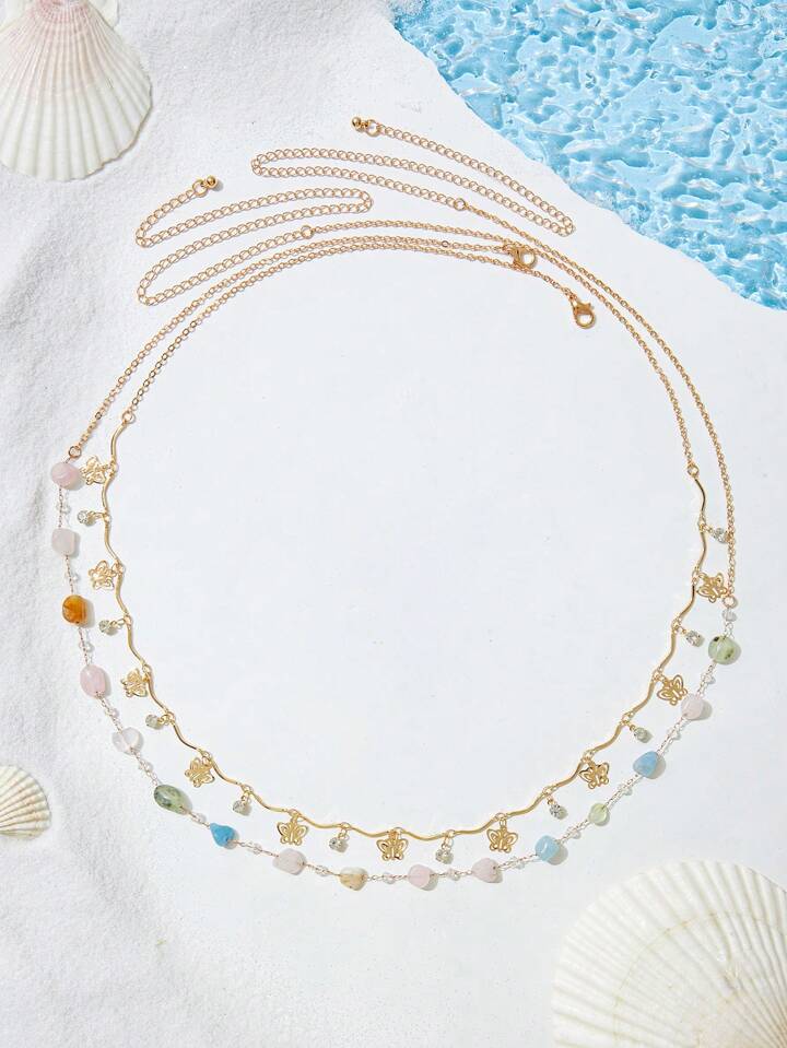 Fairycore 2 Stücke Damen-Schmetterlings- und Muscheldekor, modischer Kettengürtel für Kleiderdekoration