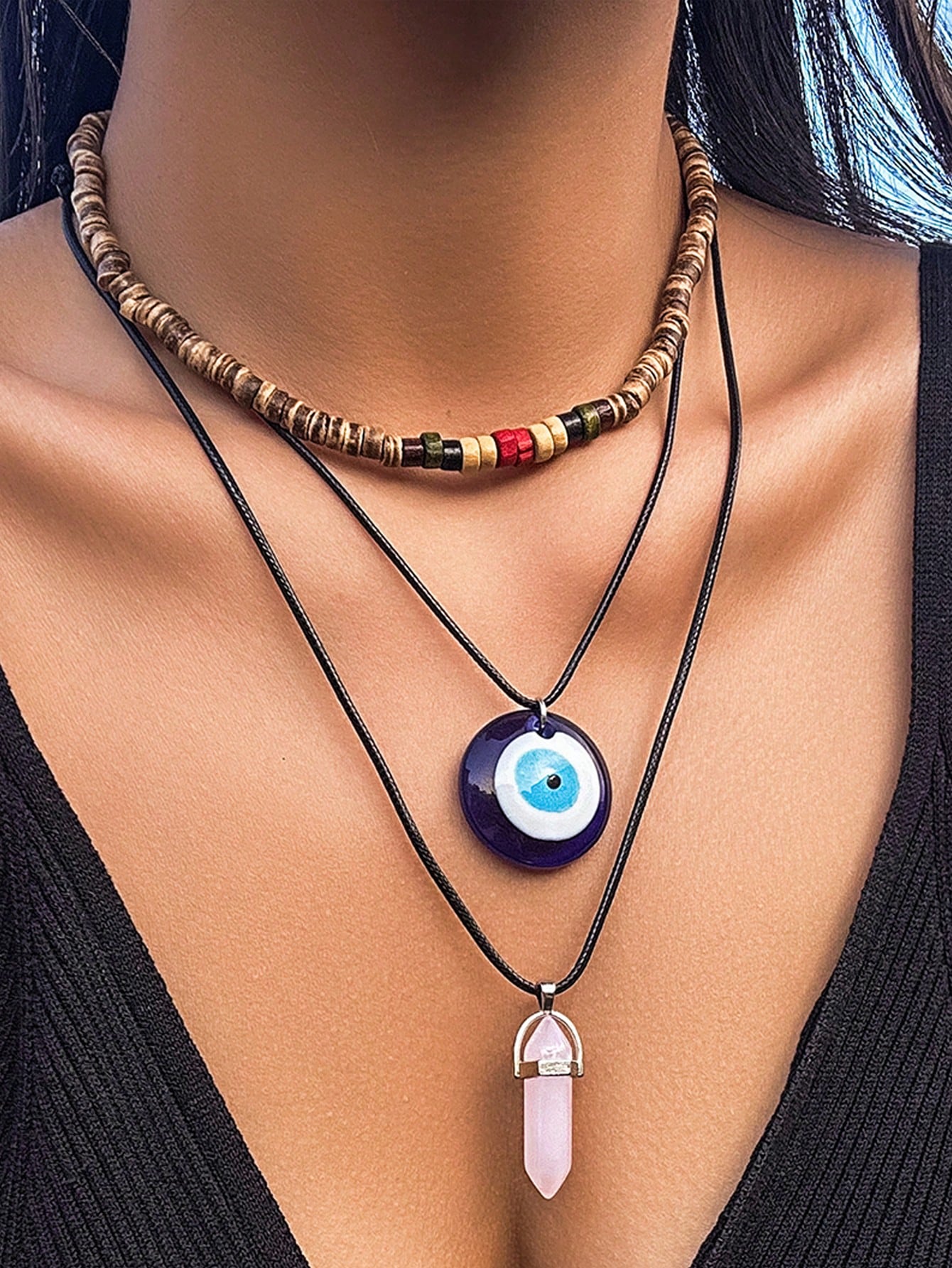 Fairycore 3 Stücke Geschichtete Halskette Mit Teufelsaugen-dekor