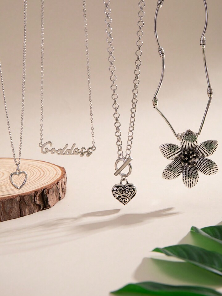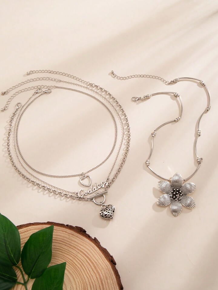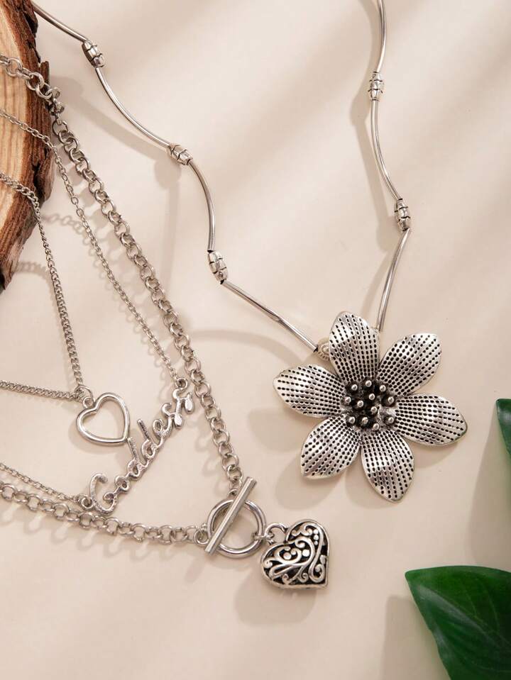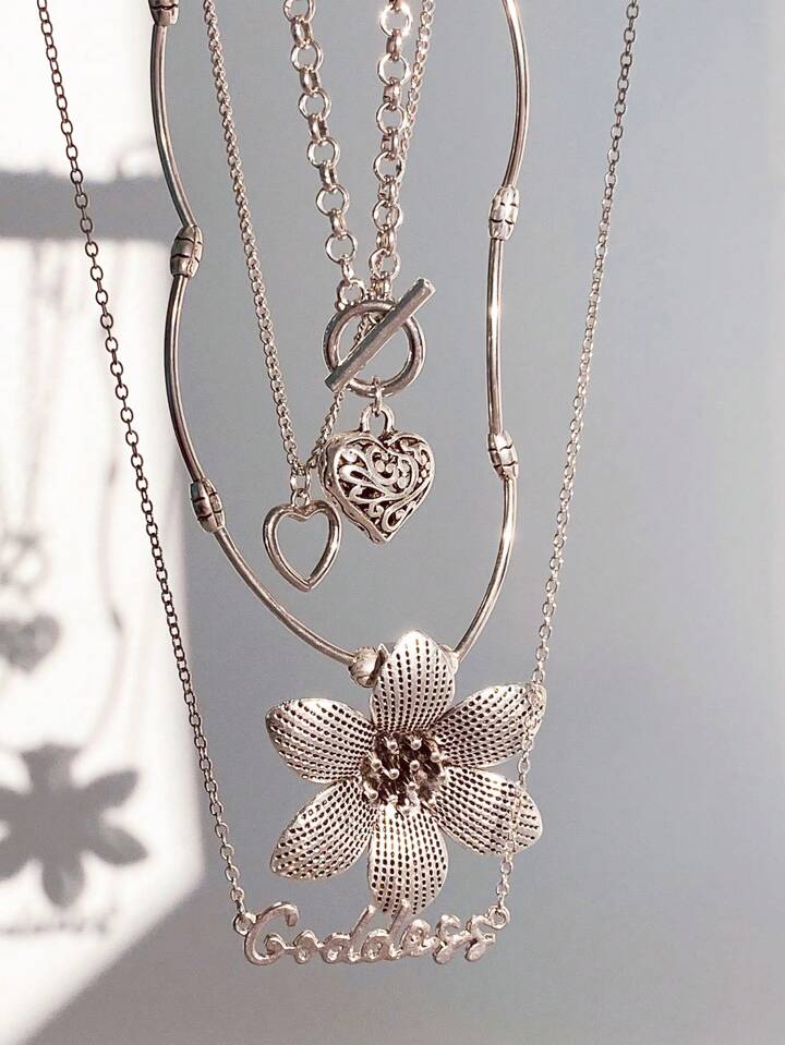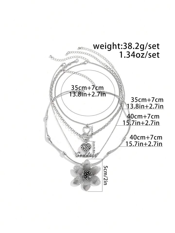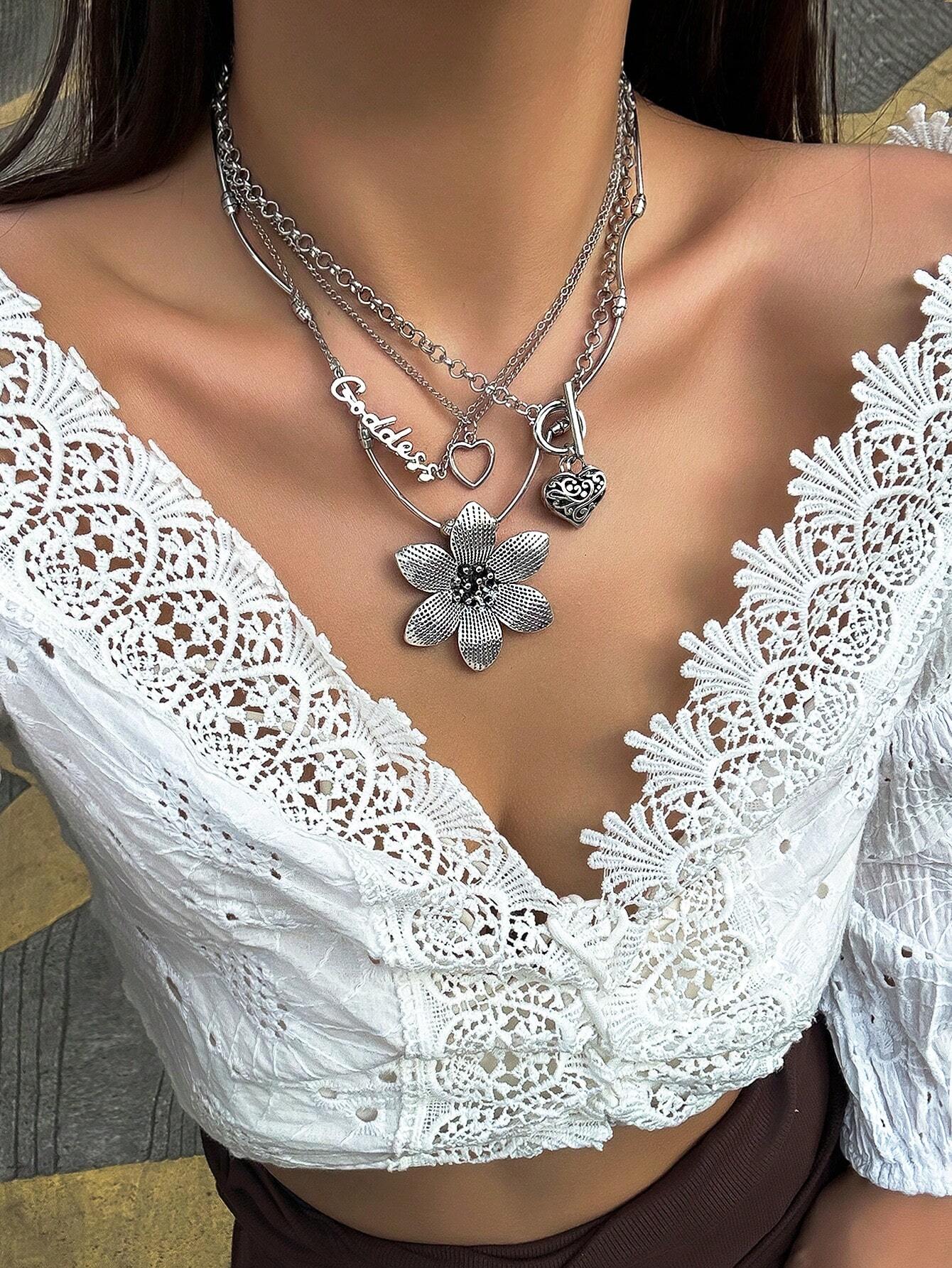 Fairycore 4 Stücke/set Angesagte Punk Stil Buchstabe, Herz & Blume Anhänger Halsketten