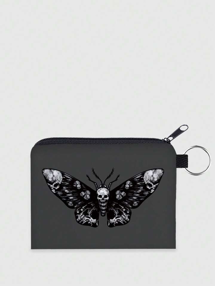 Fairycore Bienen- & Schädel-Muster Polyester tragbare Reißverschluss Münzbörse, Damen Münztasche, Urlaubsgeschenk