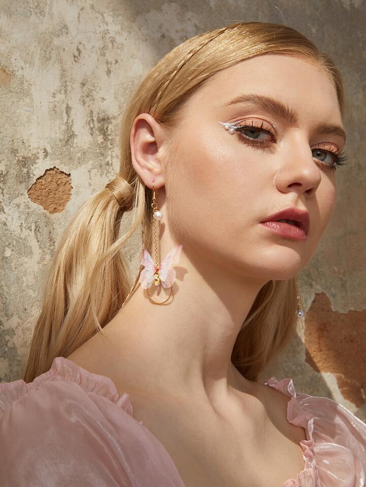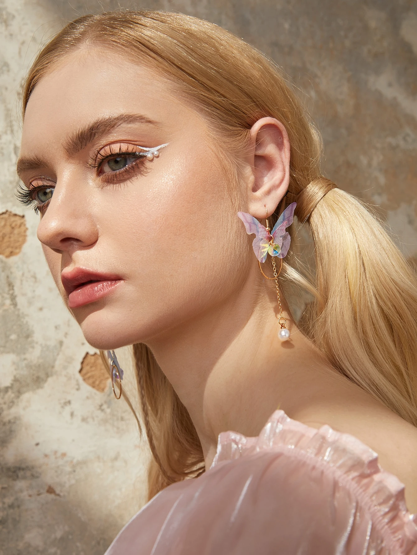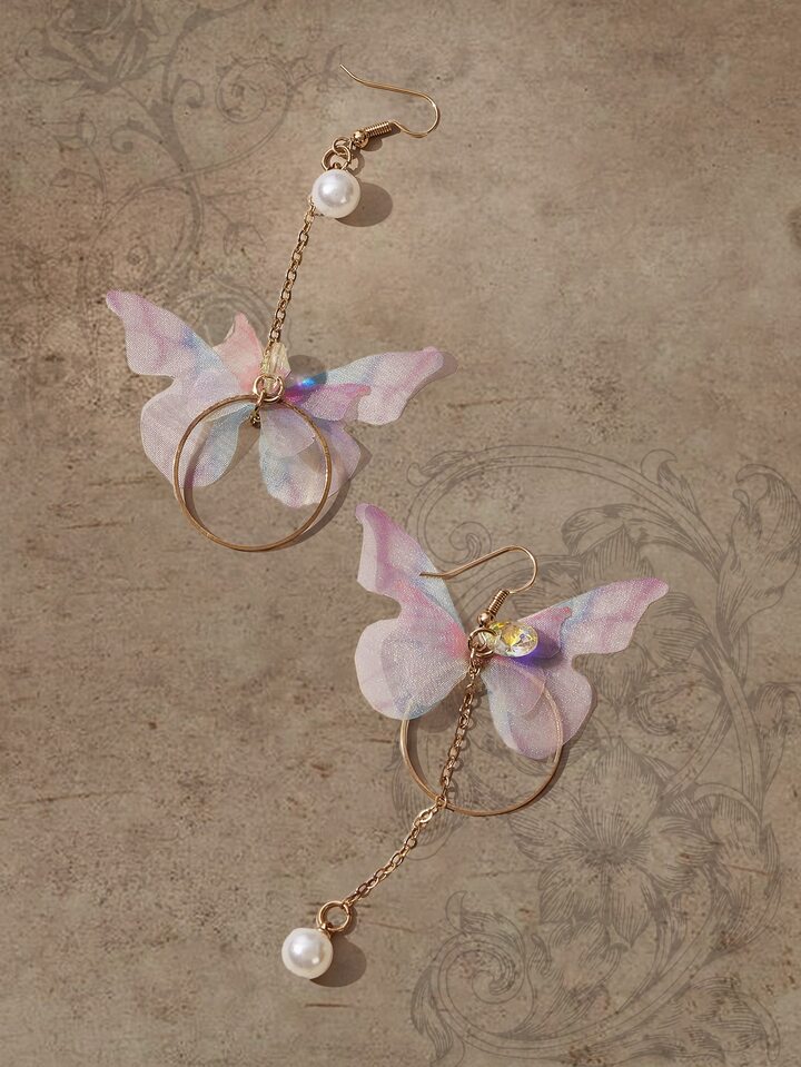 Fairycore Ohrringe mit Schmetterling & Kunstperle Dekor, nicht zusammenpassend