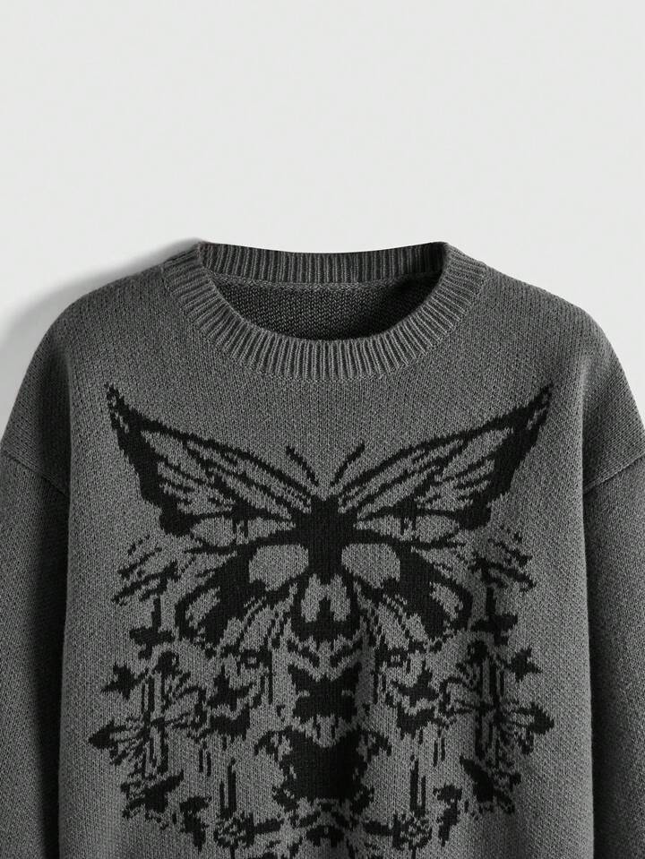 Fairycore Pullover mit Schmetterling Muster, Drop Shoulder