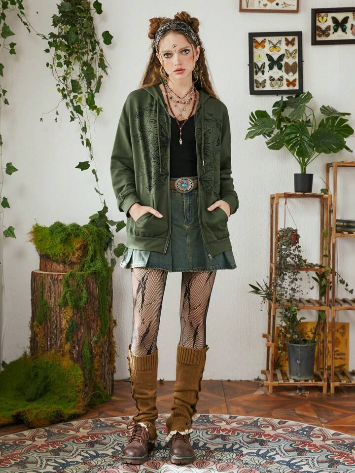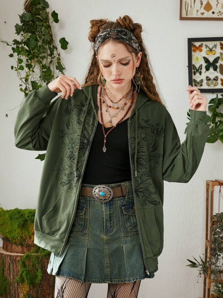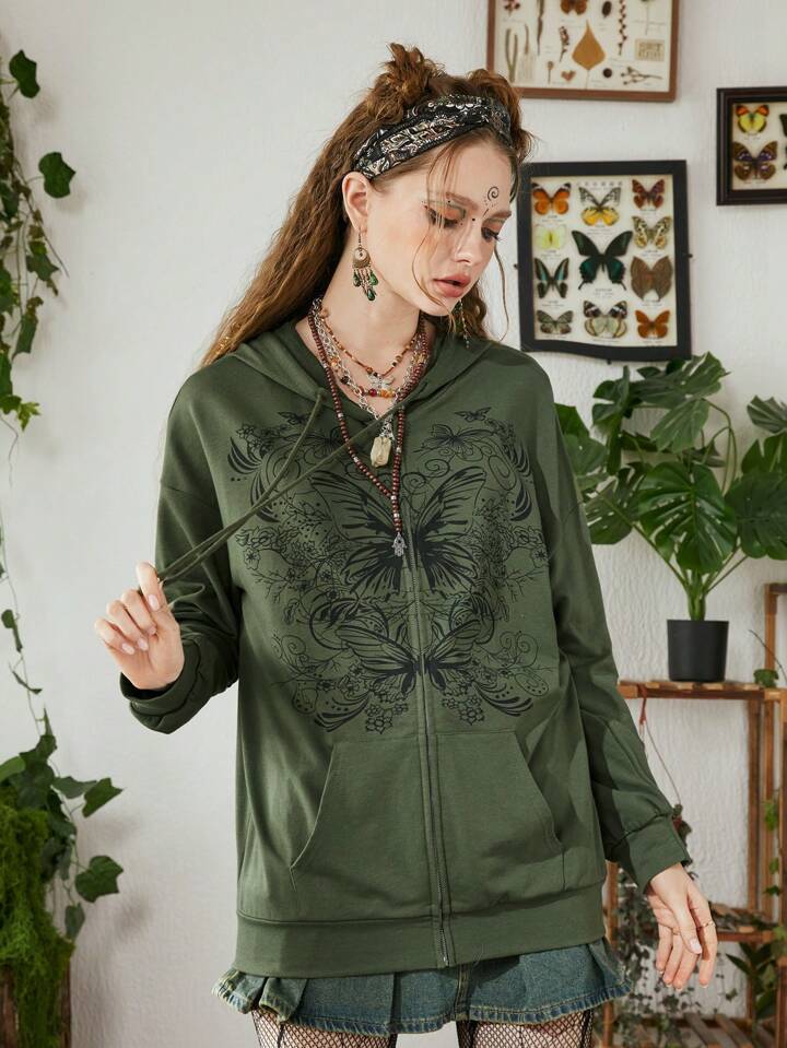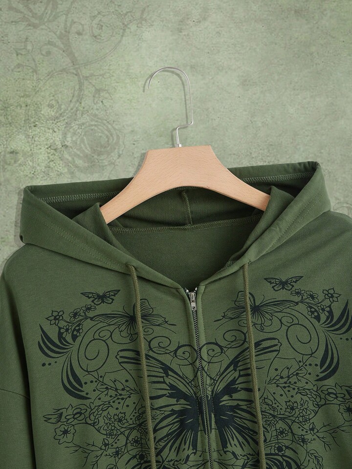 Fairycore Kapuzenpullover mit Reißverschluss Schmetterling Muster,