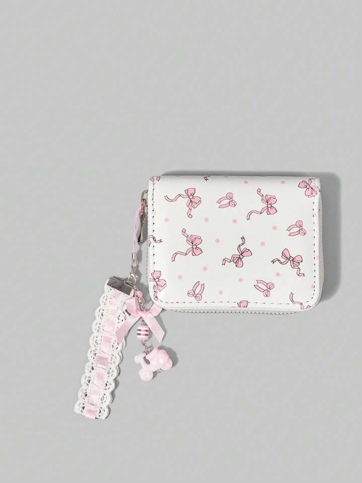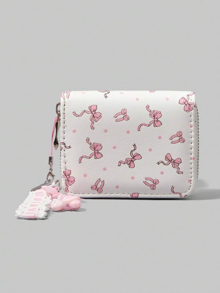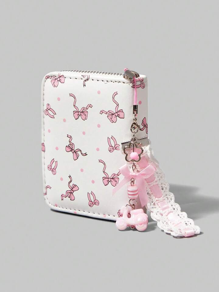 Fairycore Süße rosa Schleife weiße Basis rosa Punkt Geldbörse, Kartenfächer & Münzfach