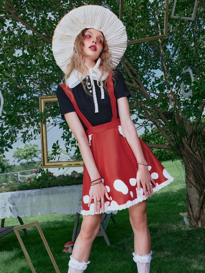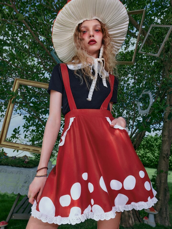 Fairycore Trägerrock mit Punkt Muster, Öse Stickerei